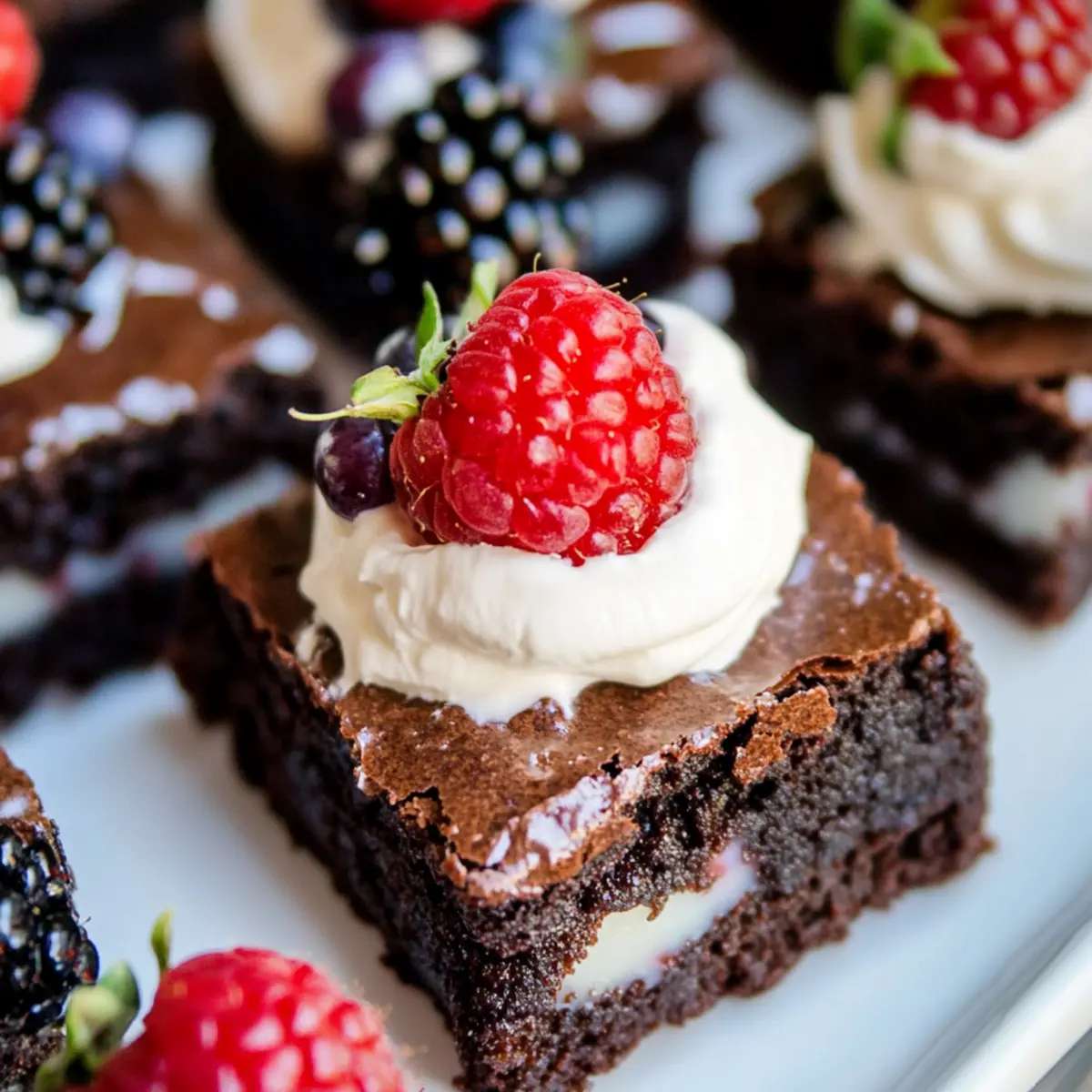 Fresh Berries: Juicy raspberries or strawberries not only add vibrant color but also a tartness that cuts through the brownies’ richness beautifully.