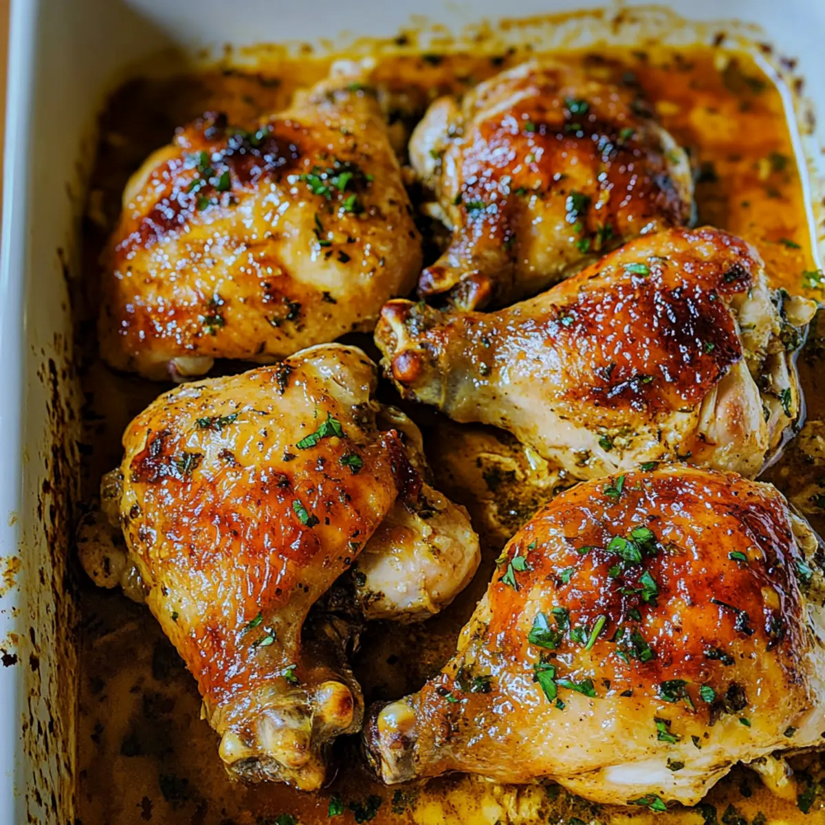 4. Preheat your oven to 375°F (190°C). In a large baking dish, arrange the marinated chicken pieces and pour the prepared sauce over the chicken.