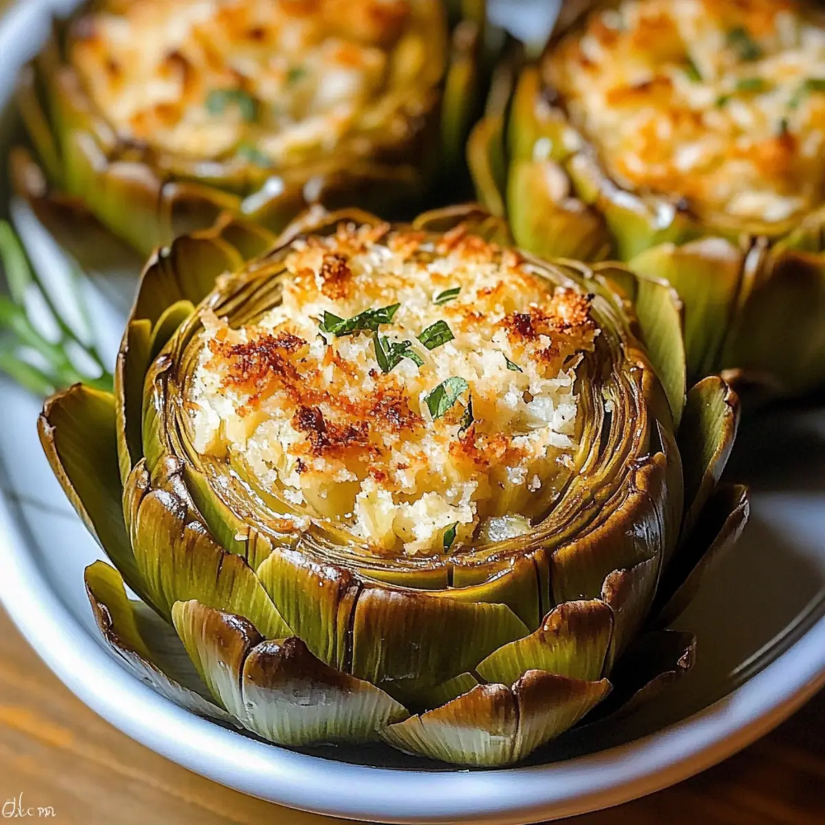 - Broil for Crunch: For an extra crispy top, broil the stuffed artichokes for a minute or two at the end of baking. Just keep an eye on them!