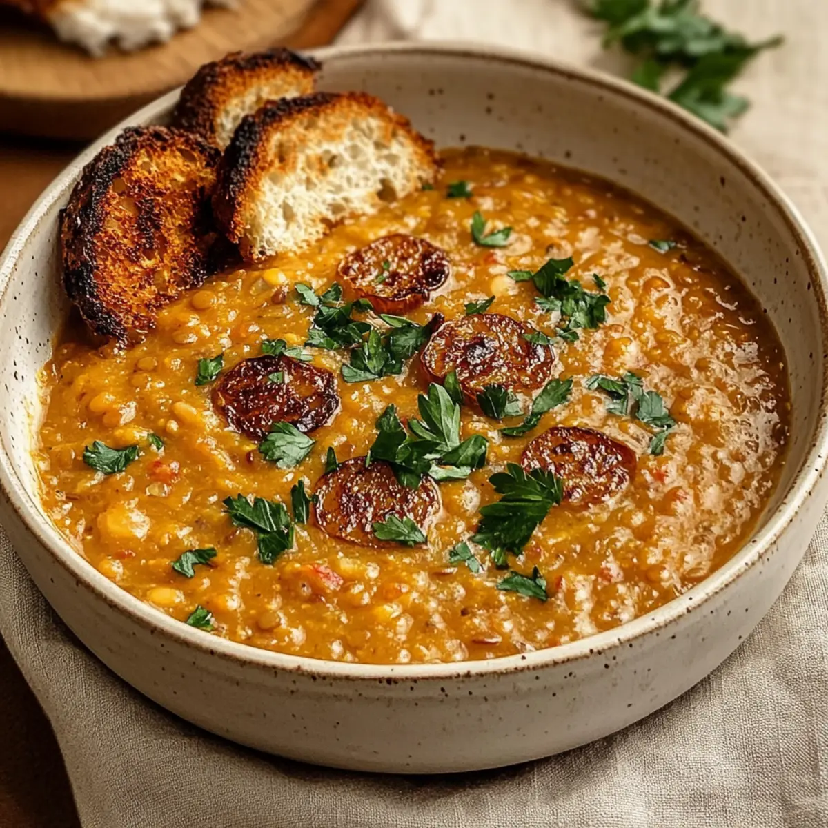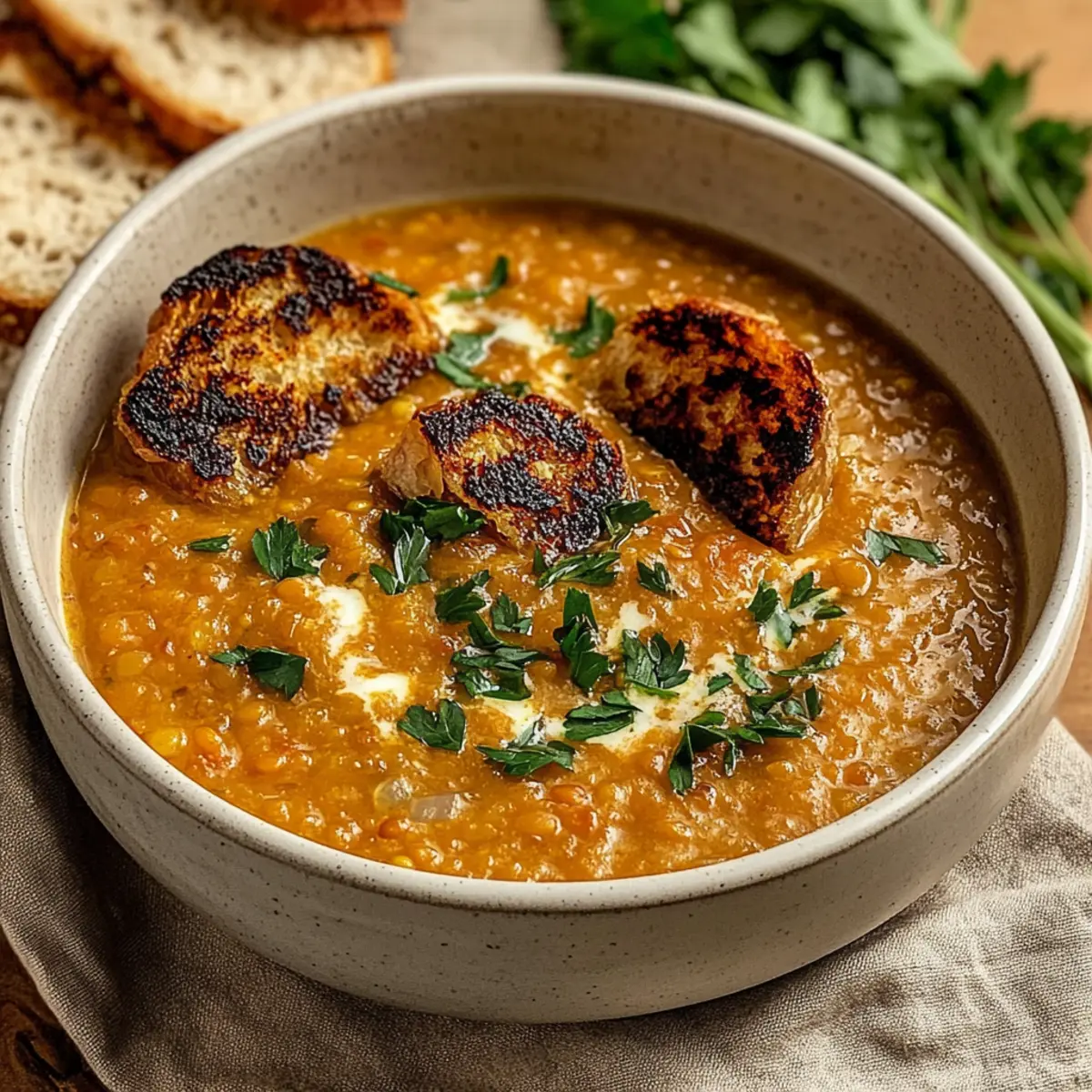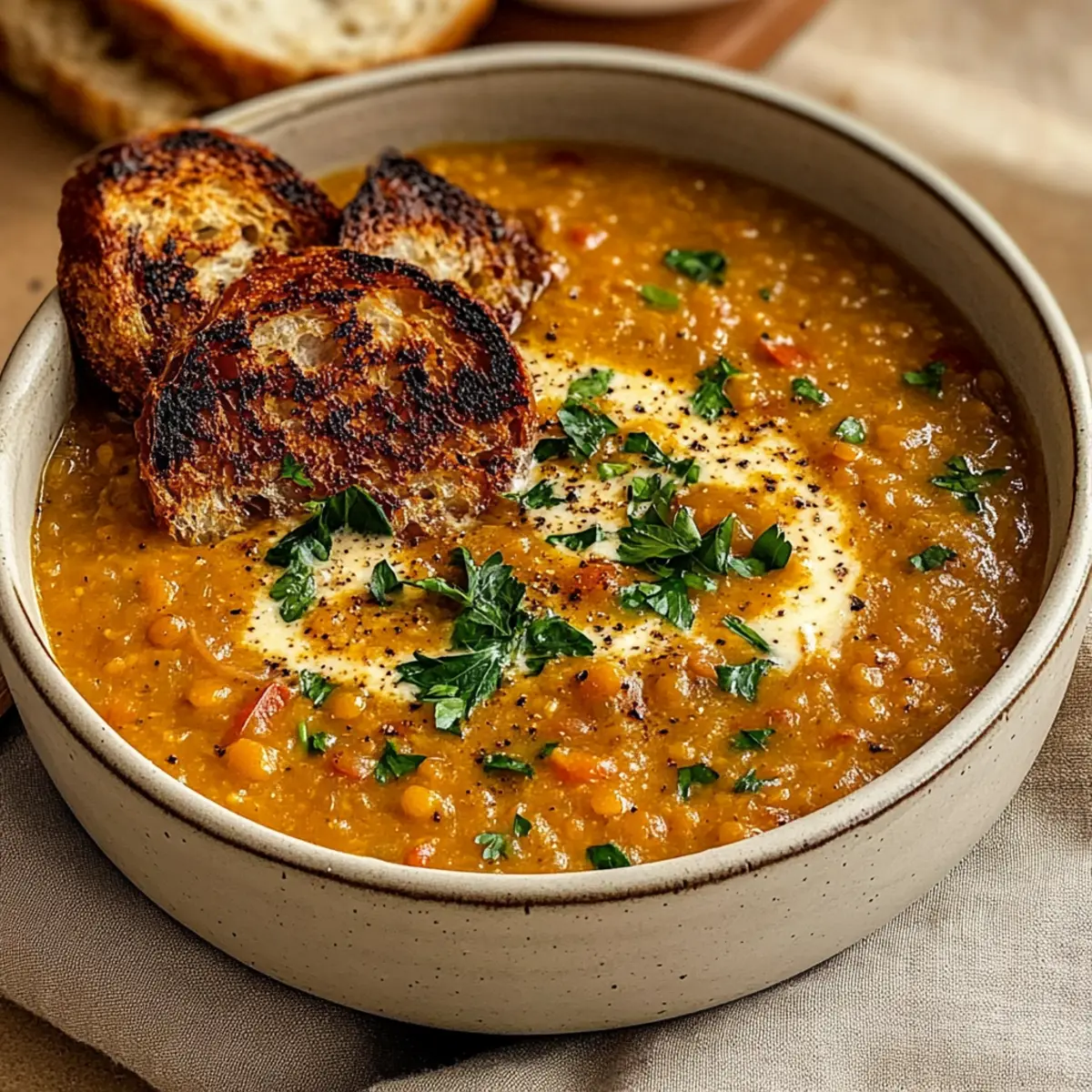 Comforting warmth: When you need a cozy evening or a quick meal, this Creamy Caramelized Onion Red Lentil Soup is your best friend. Nutritious and hearty: Packed with protein and fiber, it’s perfect for fueling your day. Earthy flavors: The combination of caramelized onions and spices creates an unforgettable taste that takes your taste buds on a delightful journey. Quick preparation: Whipping this up in under an hour means you’ll enjoy homemade goodness without the fuss. Crowd-pleaser: This soup is sure to win over family and friends, making it great for gatherings or cozy dinners at home. Try pairing it with crusty bread or a fresh salad for a complete meal!