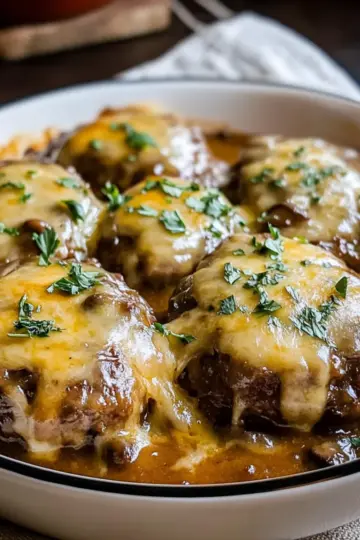 Delicious Hamburger Steak Bake with Creamy Mushroom Gravy