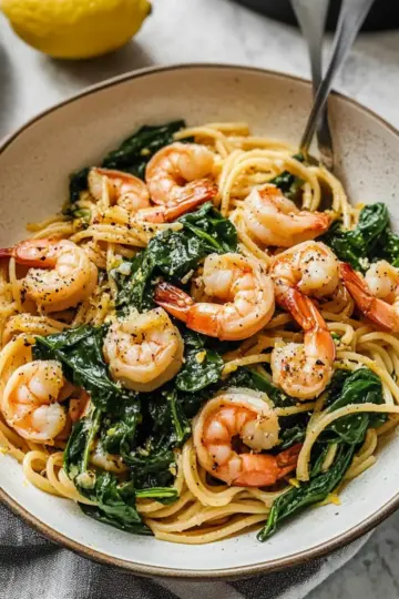 Lemon Garlic Shrimp Pasta with Spinach – A Fresh Twist Dinner
