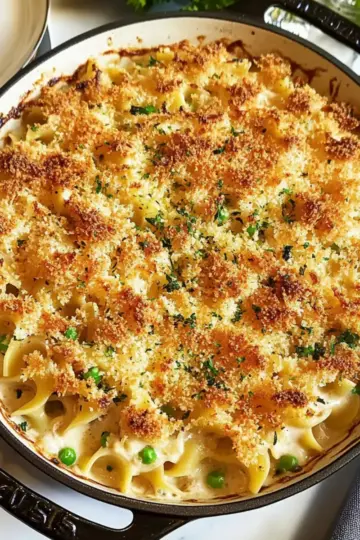 Creamy Tuna Noodle Casserole with a Crispy Topping Twist