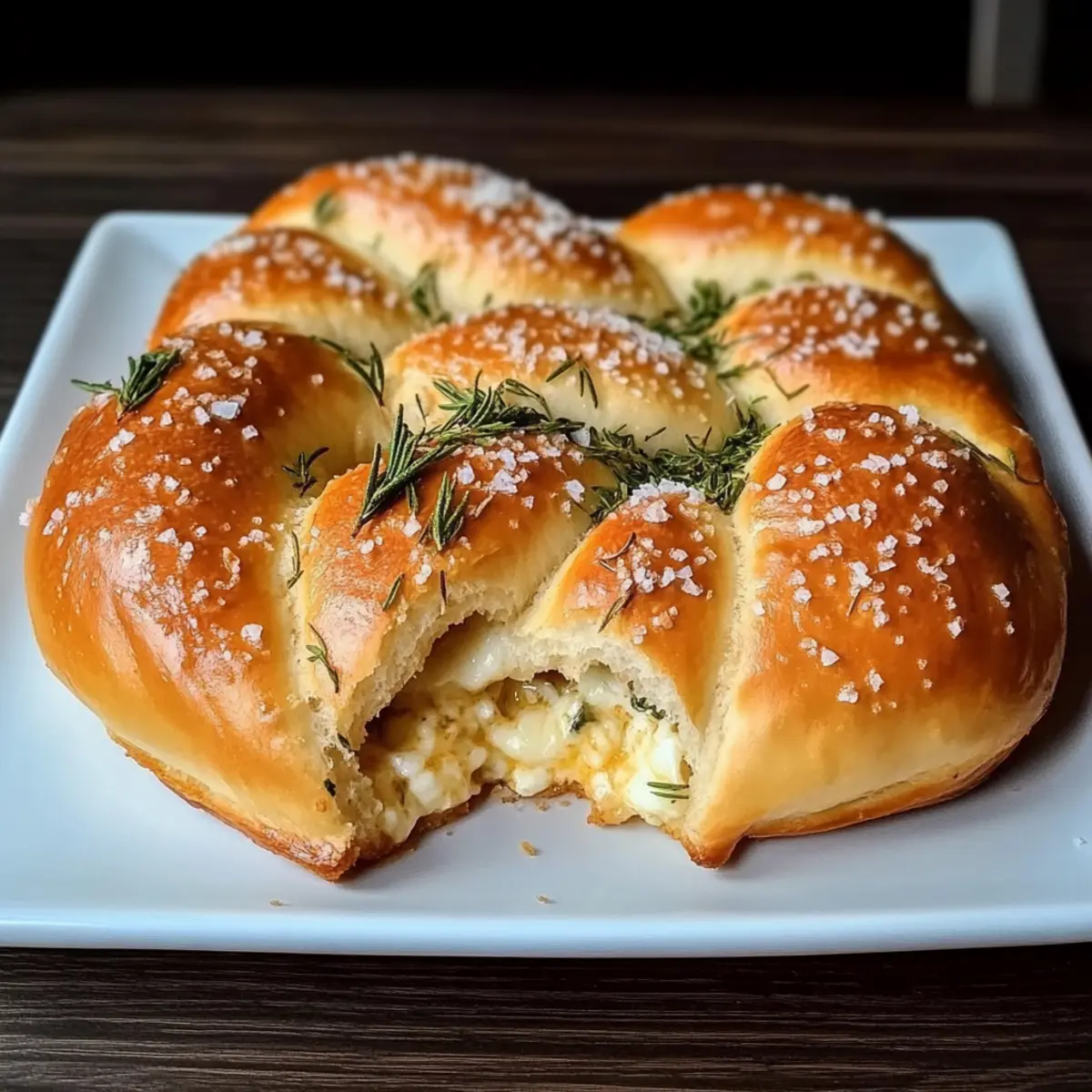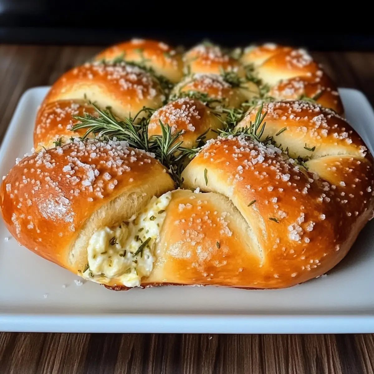 Delight in these Cheesy Mozzarella Stuffed Rosemary Parmesan pretzels, perfect for gatherings with their gooey center and aromatic flavors.