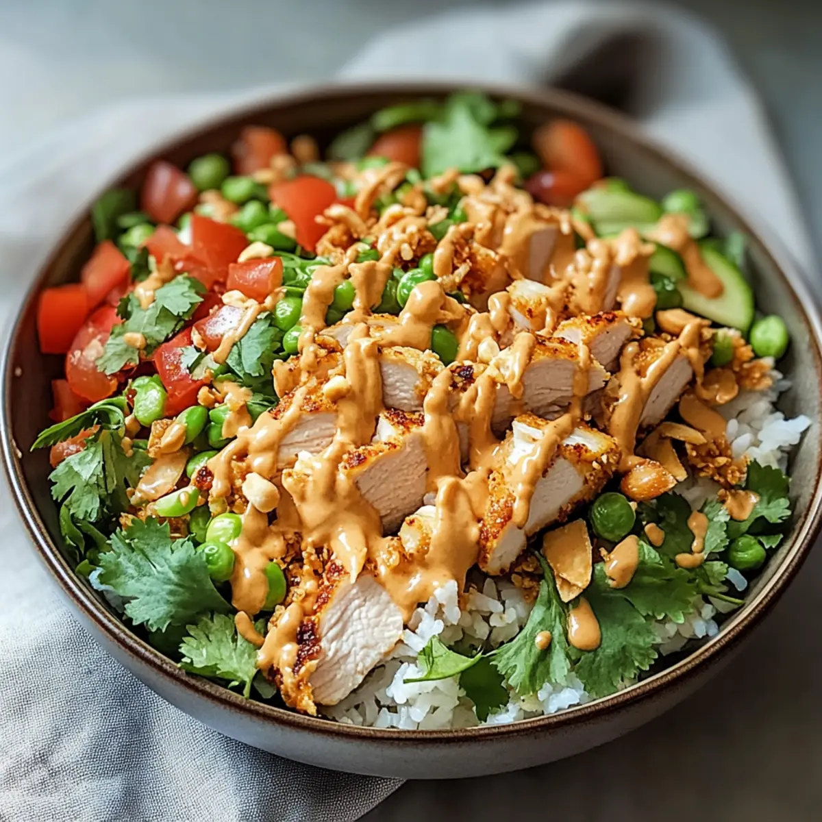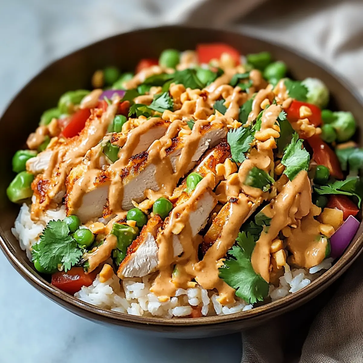 Quick meal: With just 20 minutes of prep, you can have a deliciously satisfying dish on the table in no time. Refreshingly customizable: Feel free to add your favorite veggies or proteins, making it ideal for any dietary preferences. Crispy goodness: The golden rice and tender chicken provide an irresistible crunch that will leave everyone seeking seconds. Savory dressing: The creamy peanut dressing ties all the flavors together, creating a rich, harmonious dish that stands out. Perfect alongside a Grilled Chicken Salad or paired with Corn Chicken Rice, this salad is sure to impress!