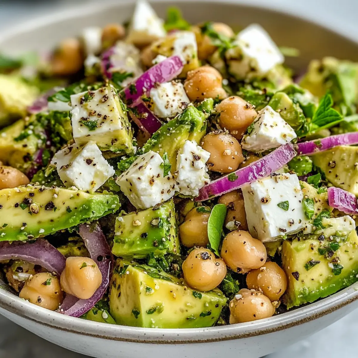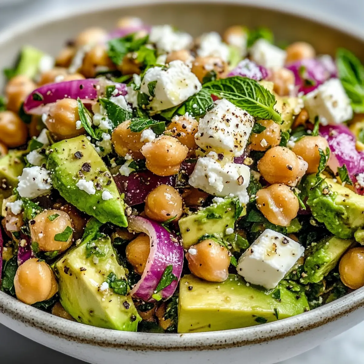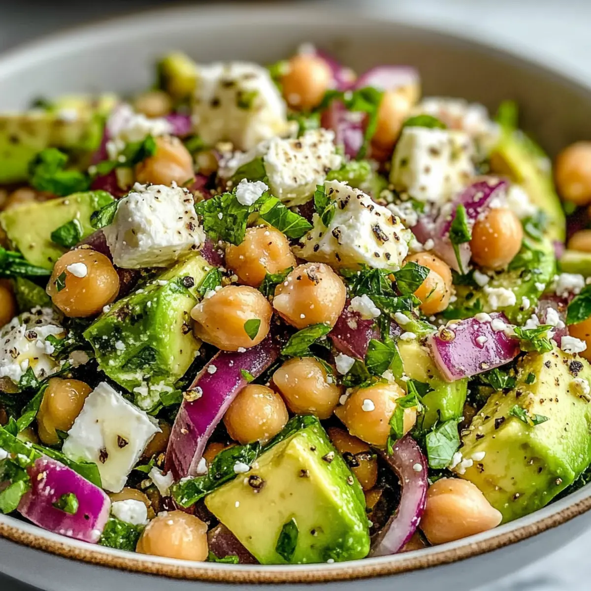 - Experiment: Feel free to mix in other herbs or veggies; transformations like adding bell peppers or a dollop of yogurt can add new dimensions to your Chickpea Feta Avocado Salad.