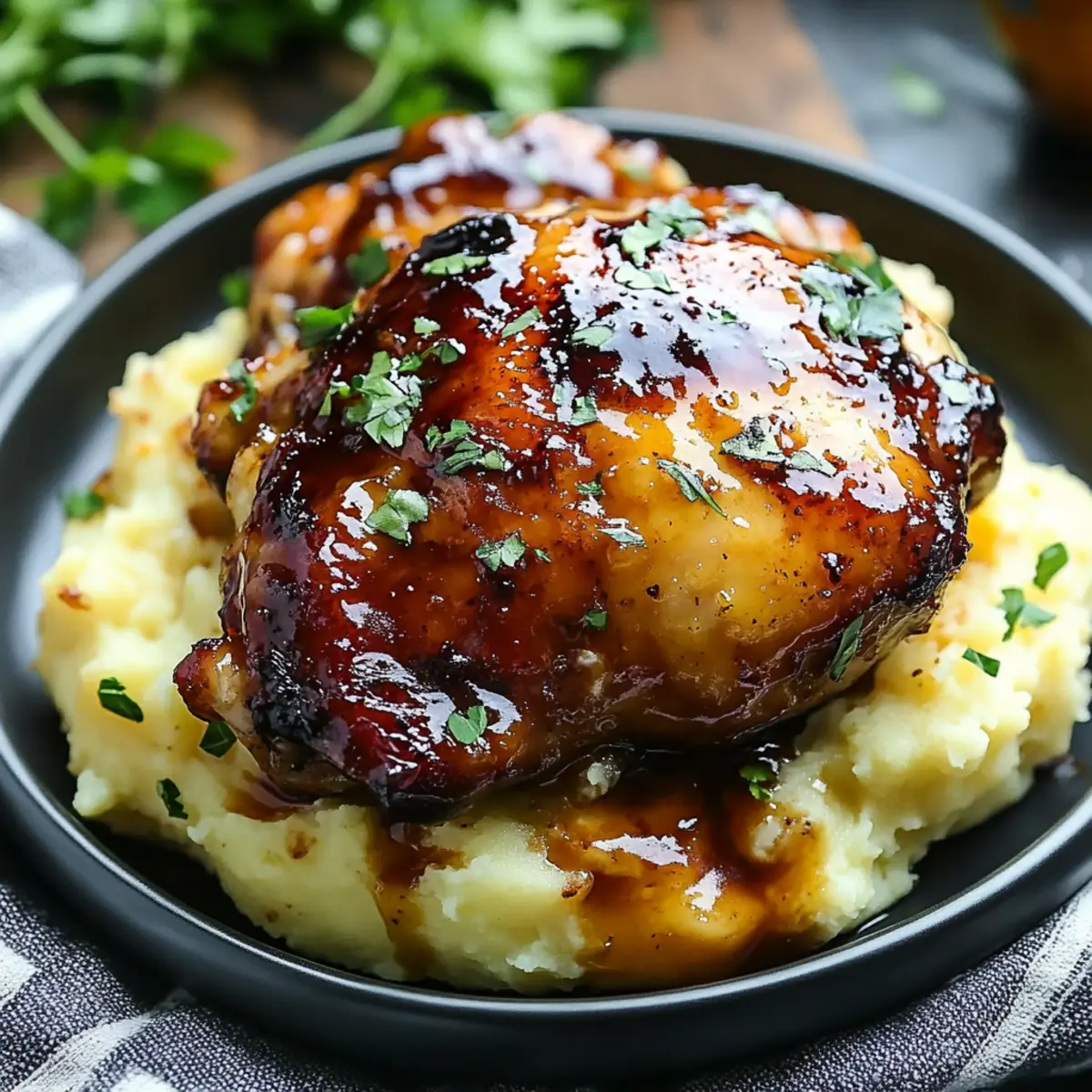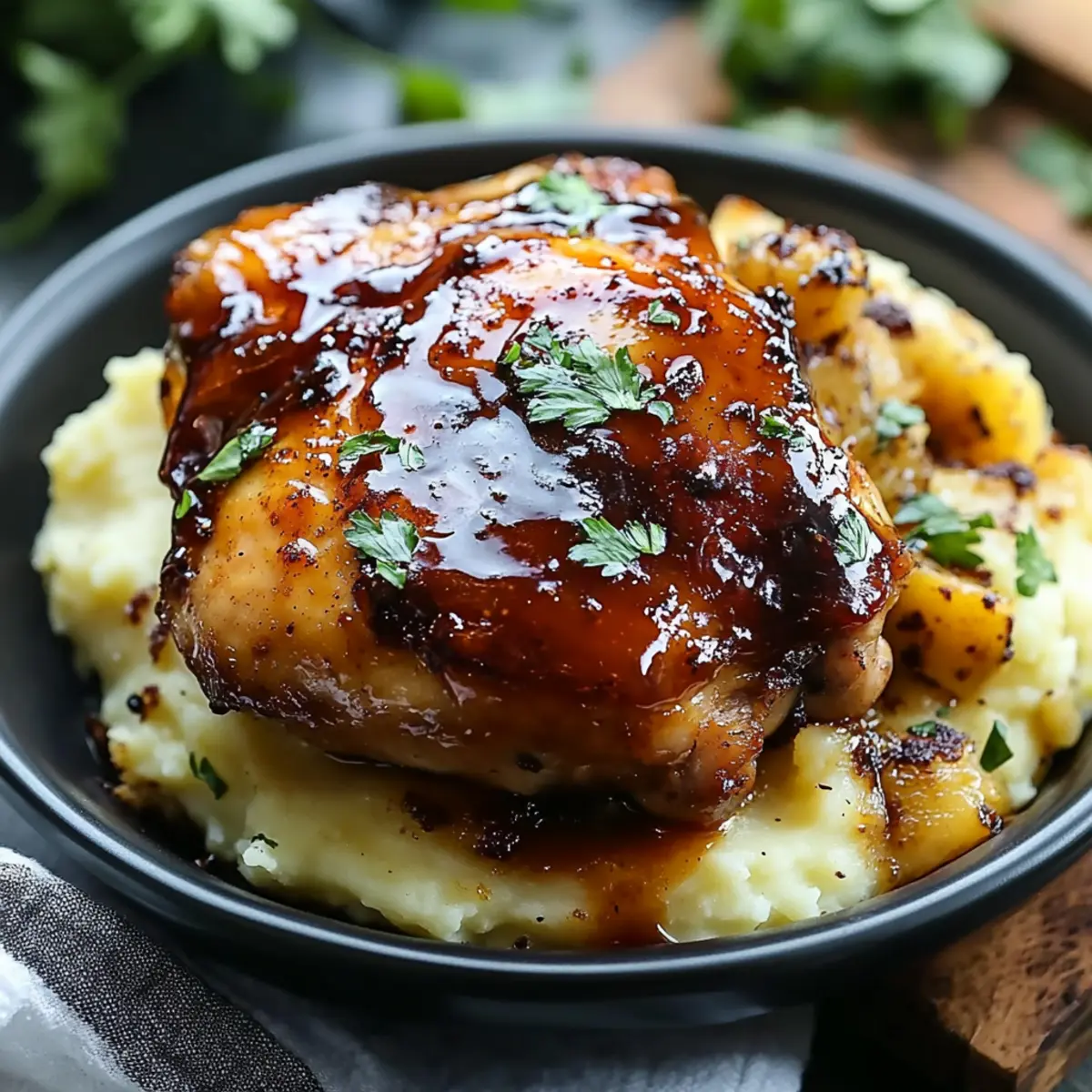 Vegan Twist: Swap chicken thighs for marinated tofu and use vegan butter and plant-based milk in the mashed potatoes for a satisfying vegan dish.