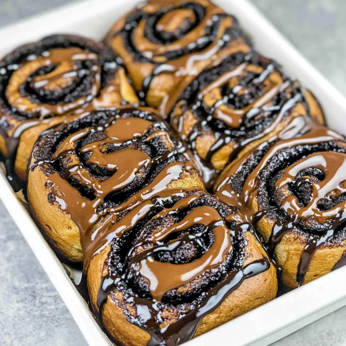 Once the rolls have cooled slightly, drizzle the rich chocolate glaze generously over the top. Allow the glaze to set for a few minutes before serving the Chocolate Cinnamon Rolls warm, making them a truly indulgent treat everyone will adore.