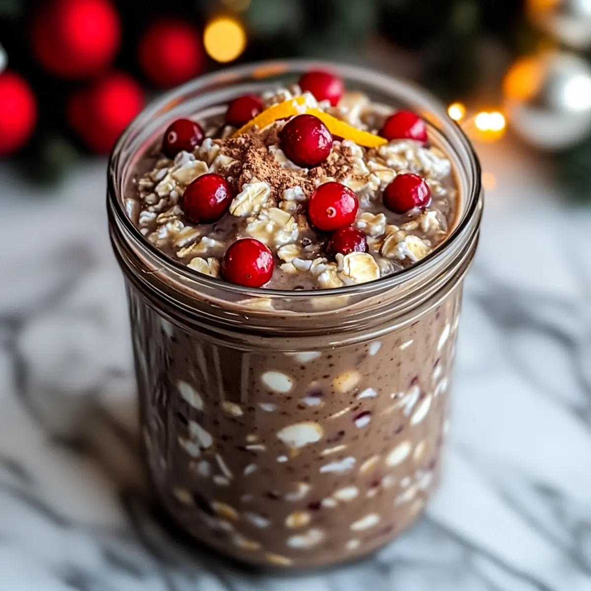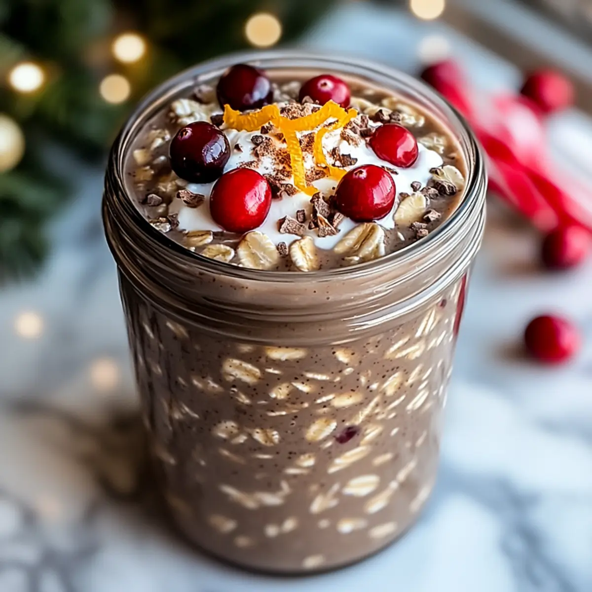Serving Tip: Add fresh toppings like crushed candy canes or chocolate chips just before serving for that festive touch and enhanced texture. Enjoy your delicious Chocolate Peppermint Overnight Oats!