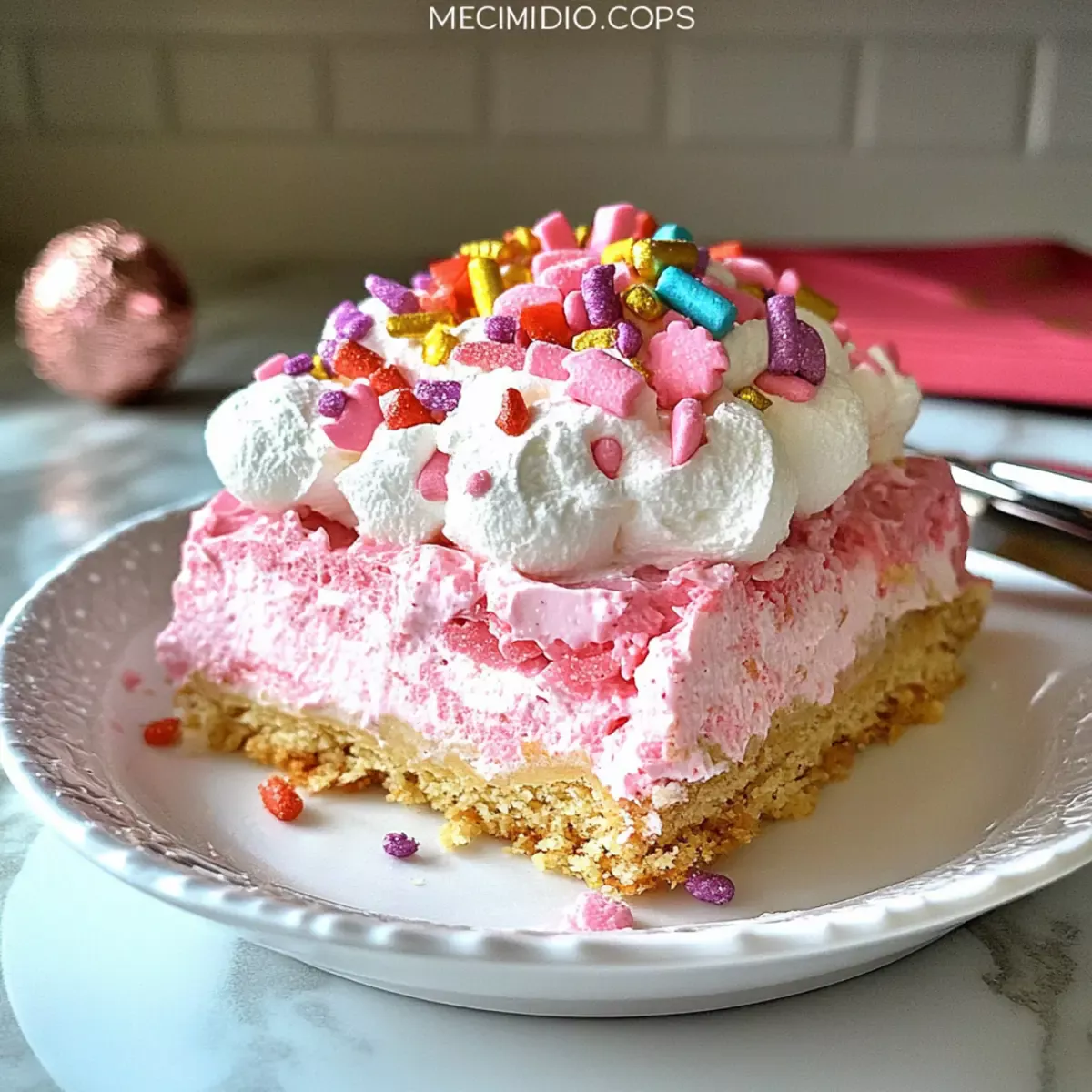 - Mix the Filling: Whisk together dry pudding mix and milk until thickened. Add pink food coloring, then fold in half of the whipped topping.
