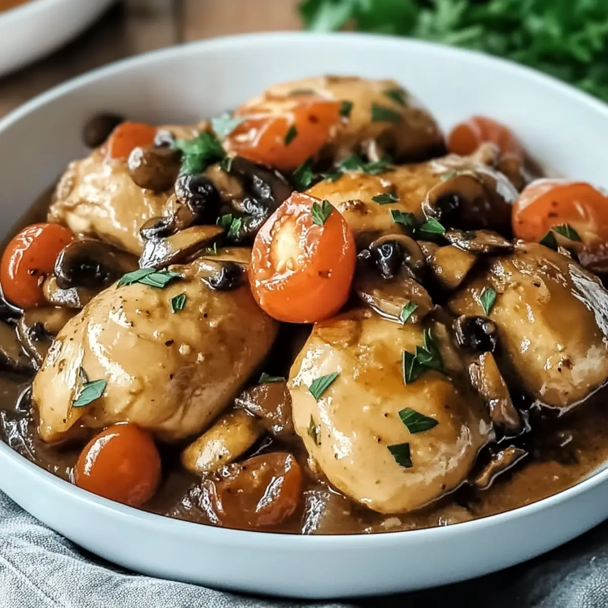 Simplicity: With just one pan, you’ll spend less time cleaning and more time enjoying your meal. Flavor Explosion: The creamy sauce, infused with garlic and fresh herbs, coats the chicken and mushrooms beautifully, creating an irresistible symphony of taste. Versatility: Swap in boneless chicken or different mushrooms based on your preference, or serve it with garlic mashed potatoes, as suggested. Quick Prep: Get dinner on the table in under an hour, perfect for those busy weeknights! Comforting Aroma: The delightful scents that waft through your kitchen will have everyone eagerly awaiting dinner time. Experience it yourself and savor the cozy vibes it brings!