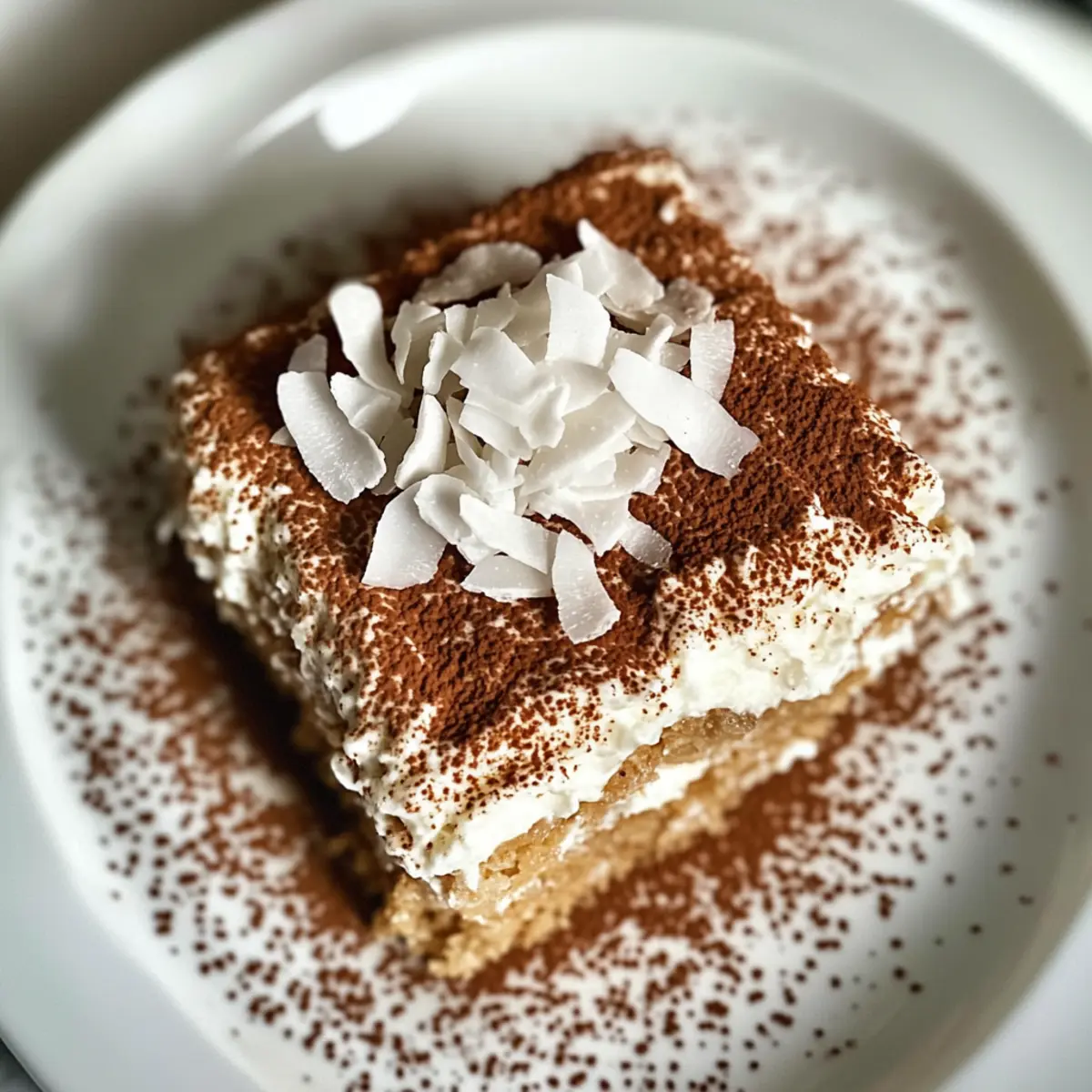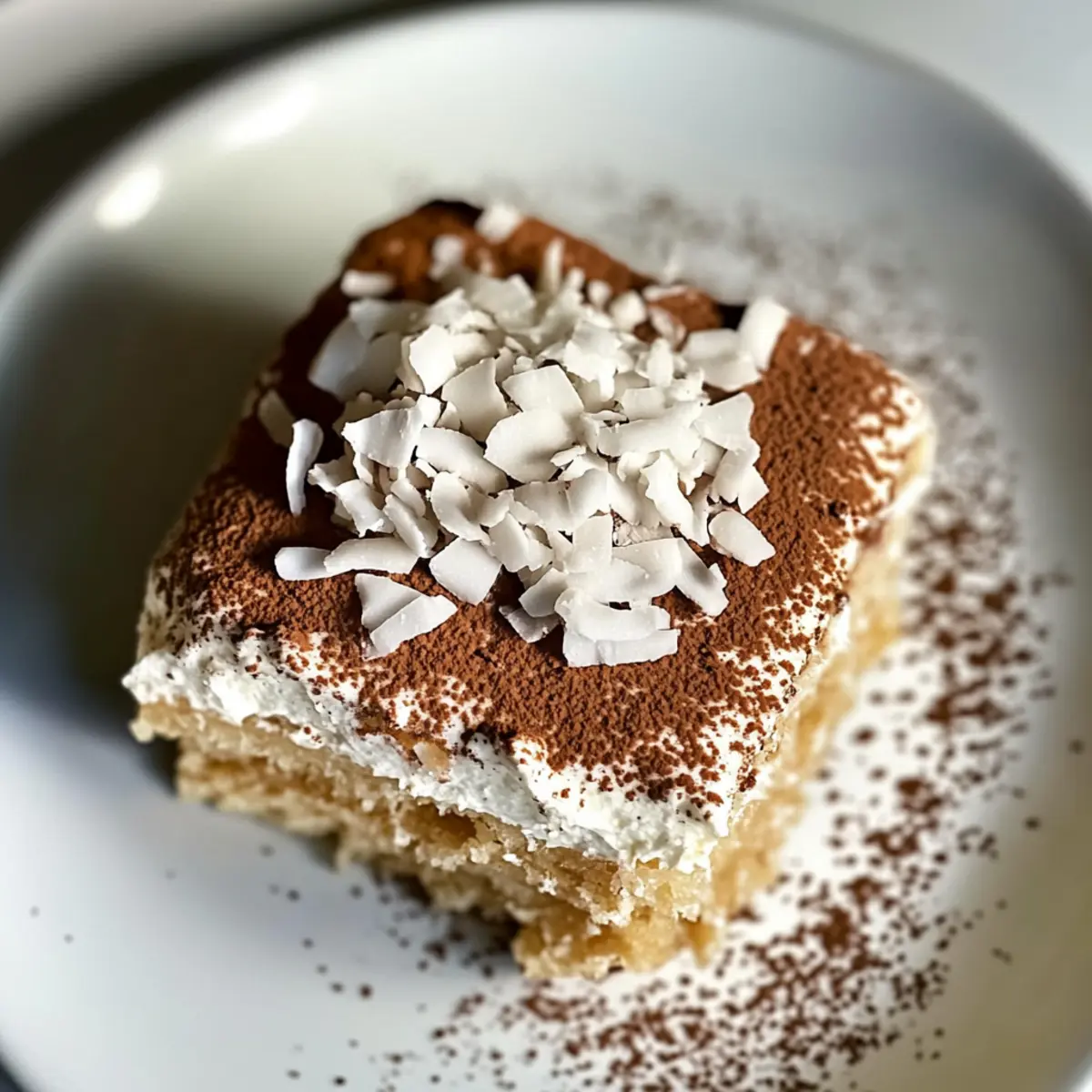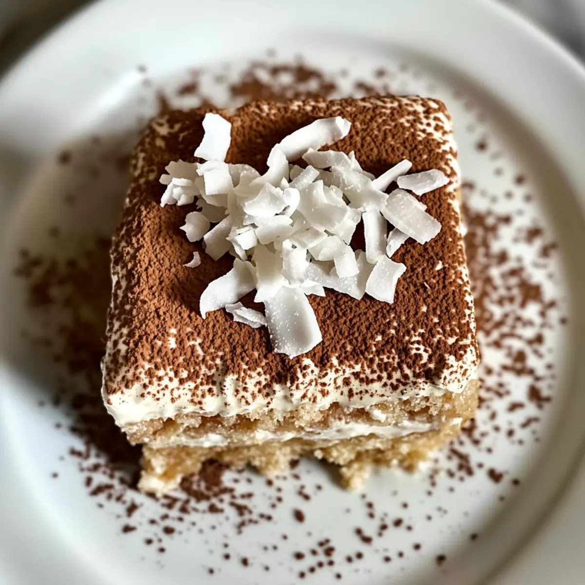 Experience the tropical delight of Coconut Rum Tiramisu, combining creamy coconut, rich coffee, and a hint of rum.