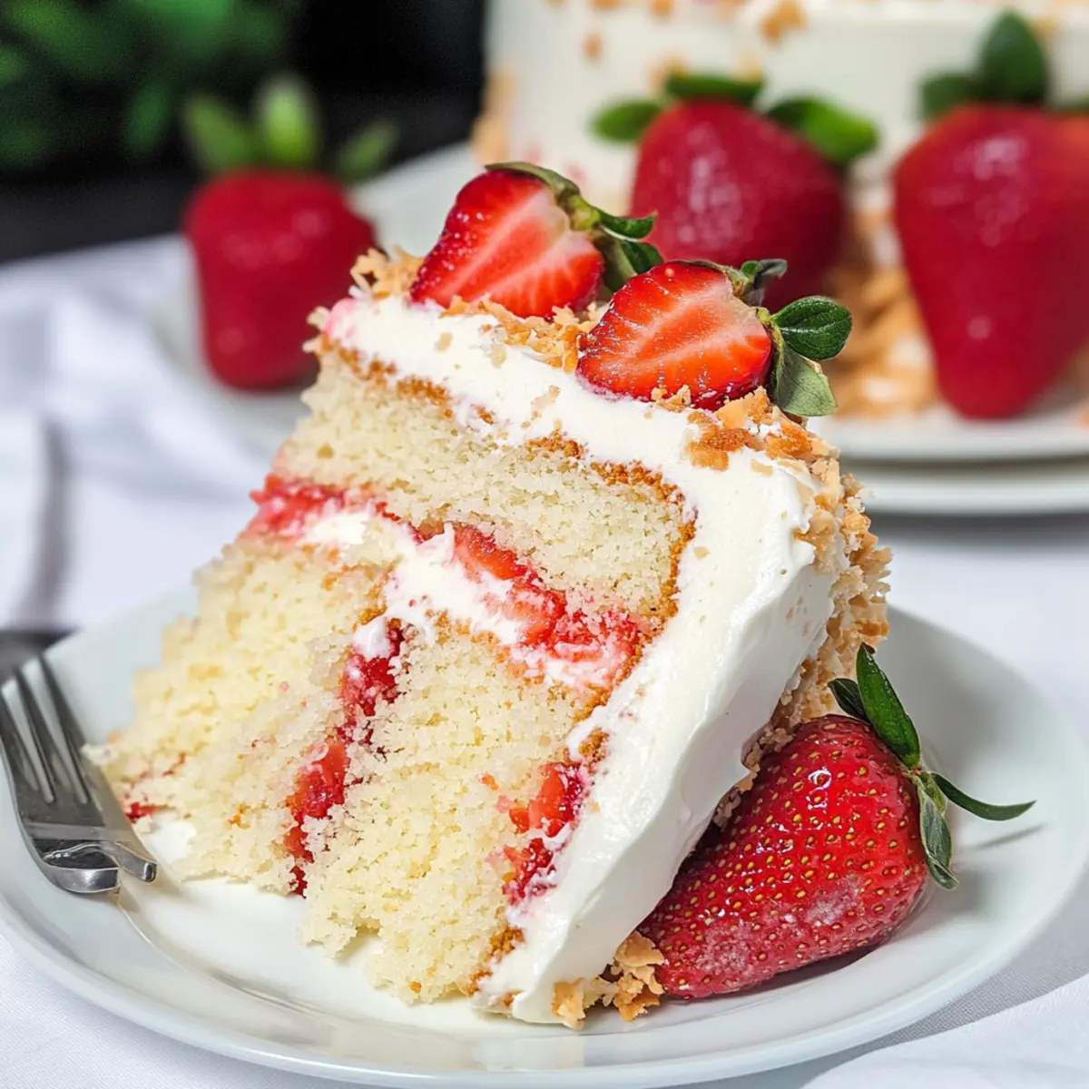 As I took a bite of the first slice, I could taste summer unfolding—sweet strawberries dancing with luscious coconut in a delightful tango. This Coconut Strawberry Cake is my new go-to for those sun-soaked afternoons and festive gatherings. With its three soft layers of moist cake and a rich cream cheese frosting, each mouthful is like a celebration of tropical flavors. This recipe promises not just a stunning centerpiece for your dessert table but also a quick prep time for busy bakers. Plus, it’s a guaranteed crowd-pleaser that will make every celebration unforgettable. Are you ready to step into the summer spirit with this deliciously crafted dessert?