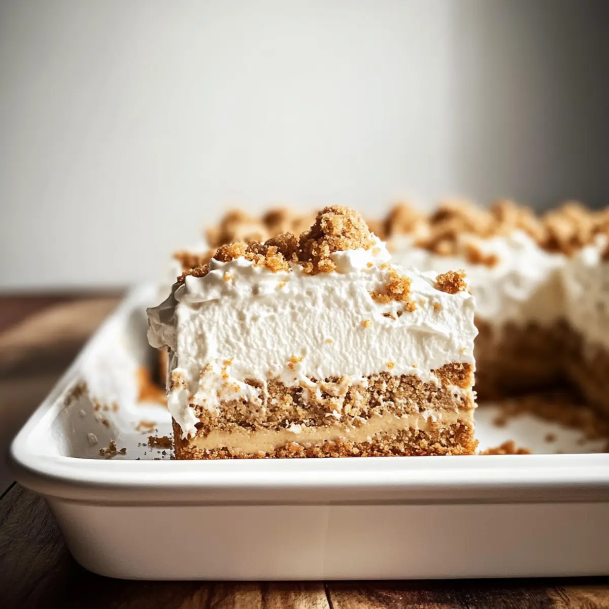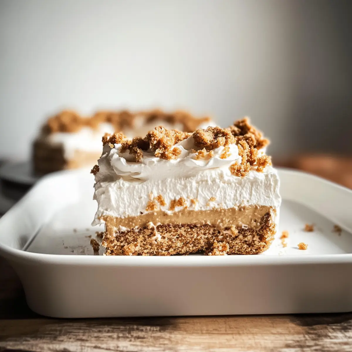 To finish off your indulgent creation, whip 1 cup of heavy whipping cream with 2 tablespoons of confectioners’ sugar and a sprinkle of ground cinnamon until it reaches your desired stiffness. Spread it generously over the chilled cake, allowing for a fluffy topping that complements the rich flavors beneath. Finally, sprinkle crushed Biscoff cookies on top for a delightful garnish.
