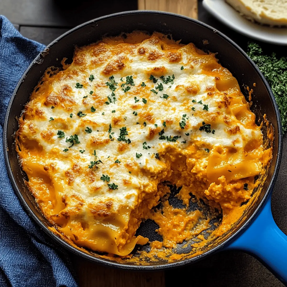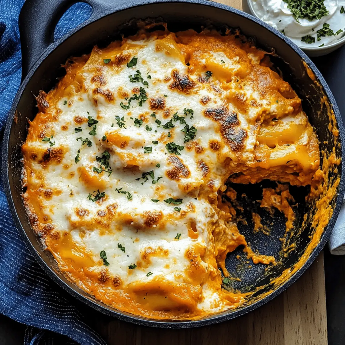 Once the cheese has reached that perfect melty goodness, remove the skillet from the oven. Garnish generously with chopped parsley for a pop of color and fresh flavor. Serve your warm, comforting Cozy High-Protein Pumpkin Lasagna straight from the skillet, enjoying every cheesy, savory bite with family or friends.