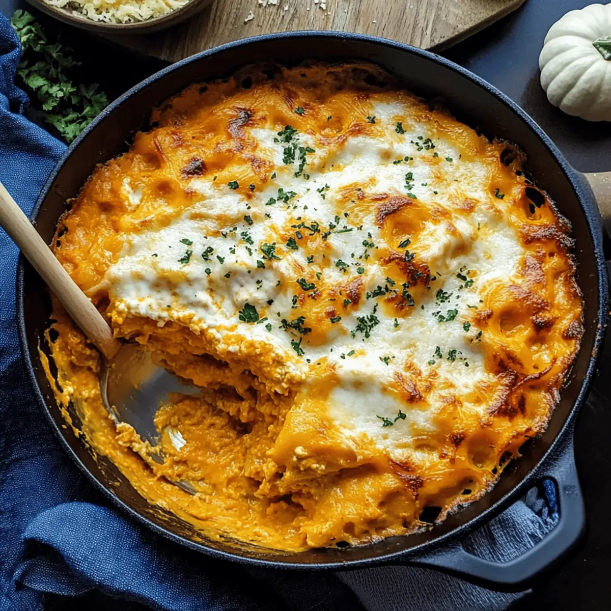 Sprinkle ¾ cup of grated part-skim mozzarella cheese and the remaining ¼ cup of Parmesan evenly over the top. Place the skillet under a broiler set to high for 2-3 minutes, monitoring it closely until the cheese is bubbling and golden brown. This final browning adds a deliciously crispy layer on top of your Cozy High-Protein Pumpkin Lasagna.