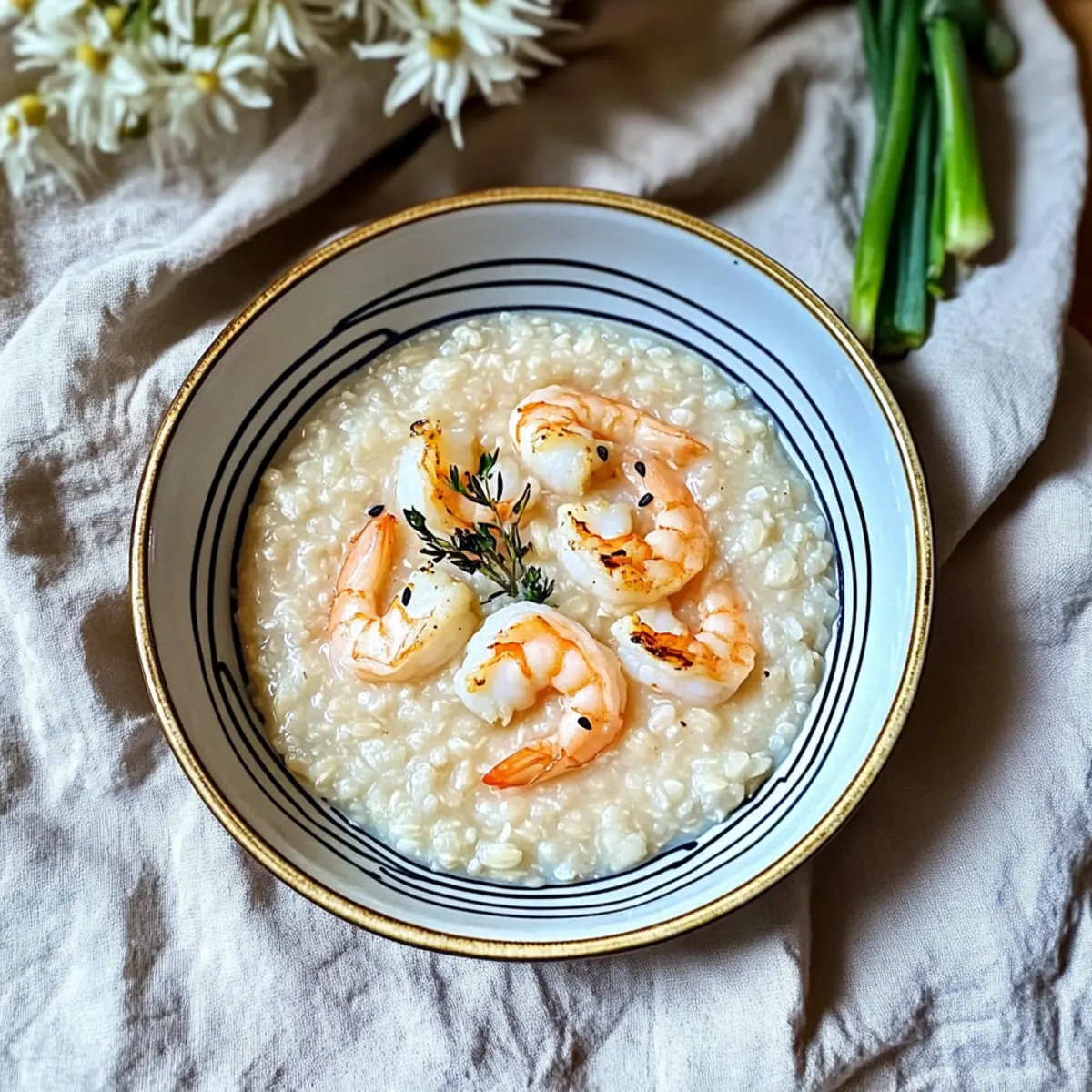 Once the rice reaches a smooth, porridge-like consistency, gently fold in the marinated shrimp. Cook for an additional 2-3 minutes, or until the shrimp turn pink and opaque. Be careful not to overcook the shrimp to maintain their tender texture. You now have a comforting base ready for serving.