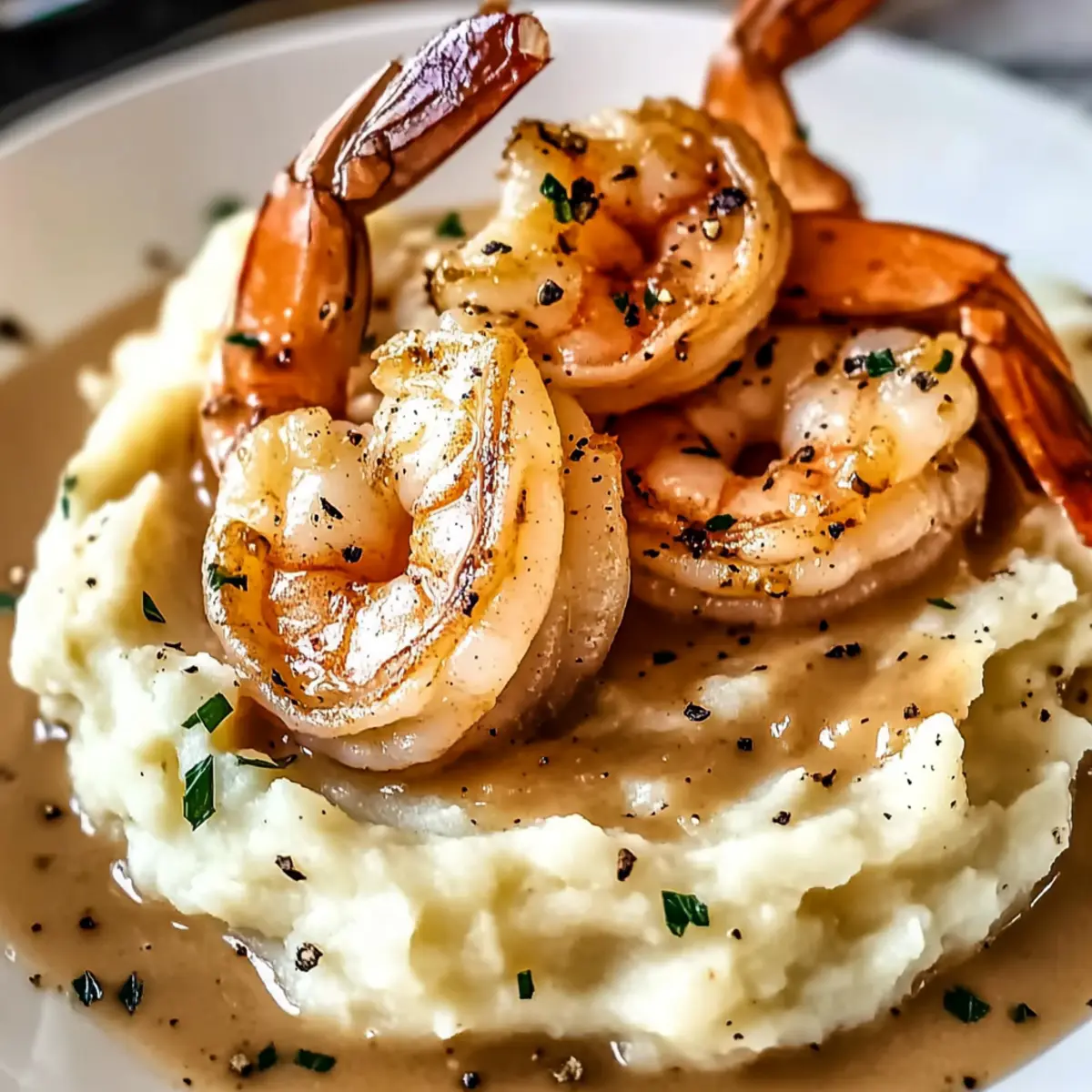 Enjoy whipping up this Creamy Garlic Shrimp Over Mashed Potatoes that combines comfort and elegance in every delicious bite!