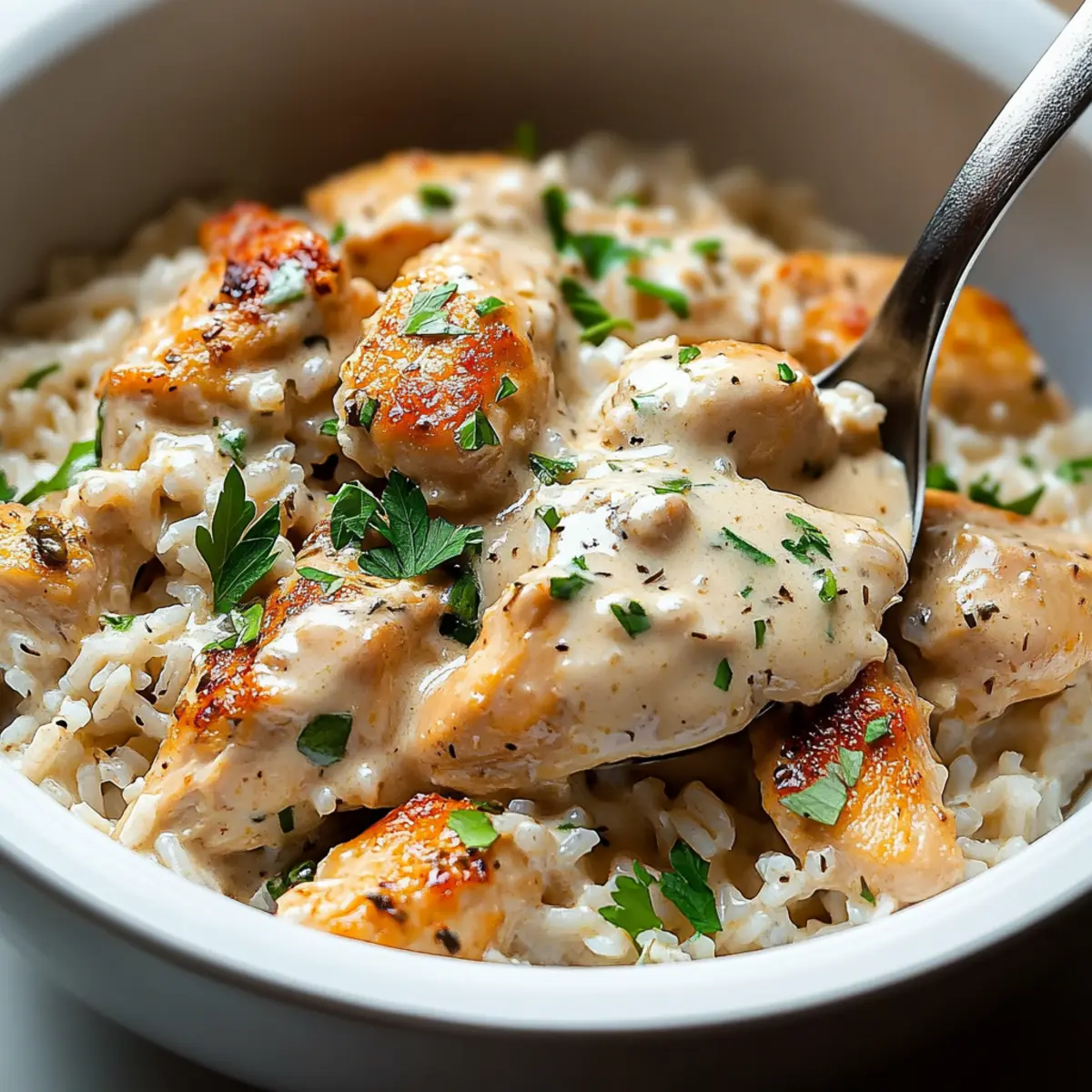 The aroma of sizzling chicken can turn any ordinary evening into a delightful experience. As I stirred the cream sauce, I knew I was about to create something special: Creamy Herb Chicken & Basmati Rice, a dish that wraps comfort in every bite. This gluten-free recipe is not just an easy fix for those busy weeknights; it’s a warm hug on a plate, complete with tender chicken cloaked in a velvety herb-infused sauce served atop fluffy basmati rice. Picture a family gathered around the table, smiles spreading as they savor this perfectly cozy meal. Plus, it’s a one-pan wonder that saves you time on both cooking and cleanup—who wouldn’t love that? Curious to learn how to whip up this creamy comfort classic? Let’s dive in!