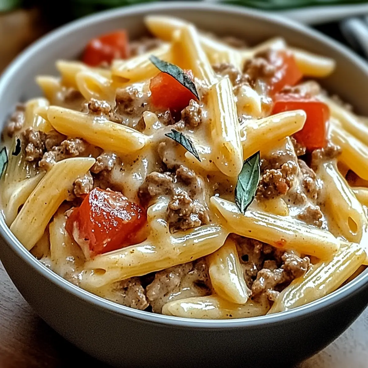 Craft this scrumptious Creamy Rotel Pasta with Ground Beef and watch as your family gathers around for a comforting meal that warms the soul!