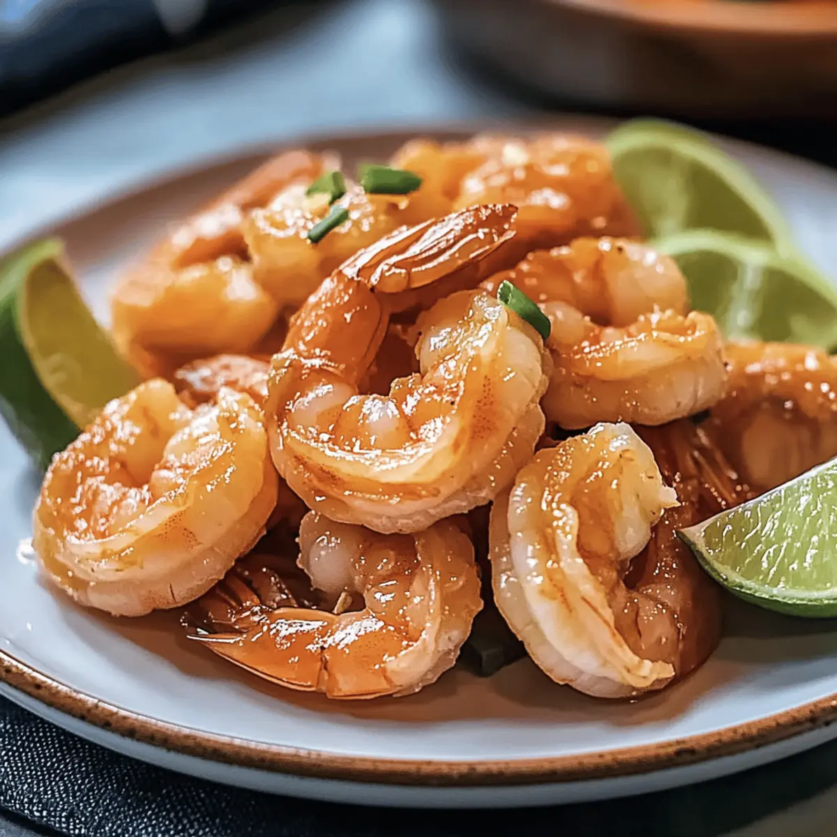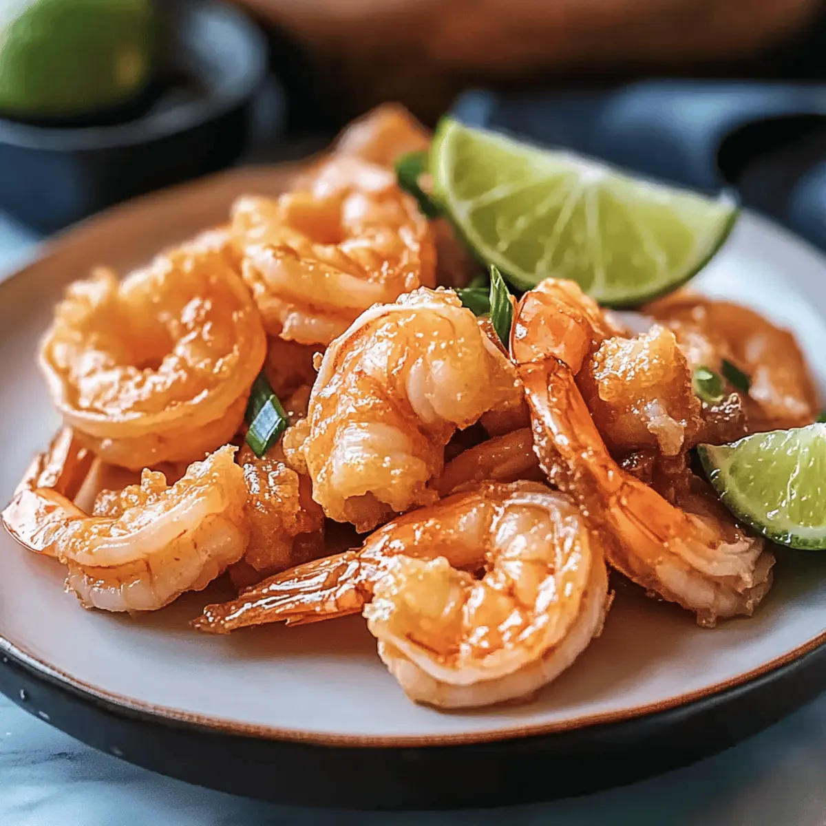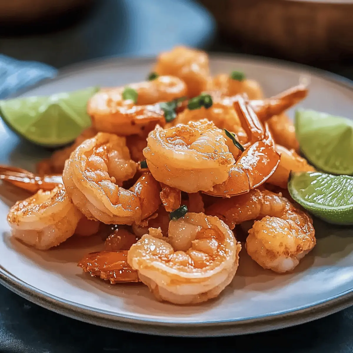 - Plate your shrimp and garnish with sliced green onions and lime wedges. Serve hot.