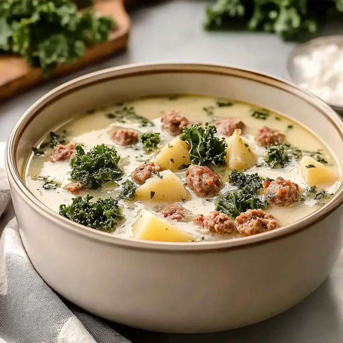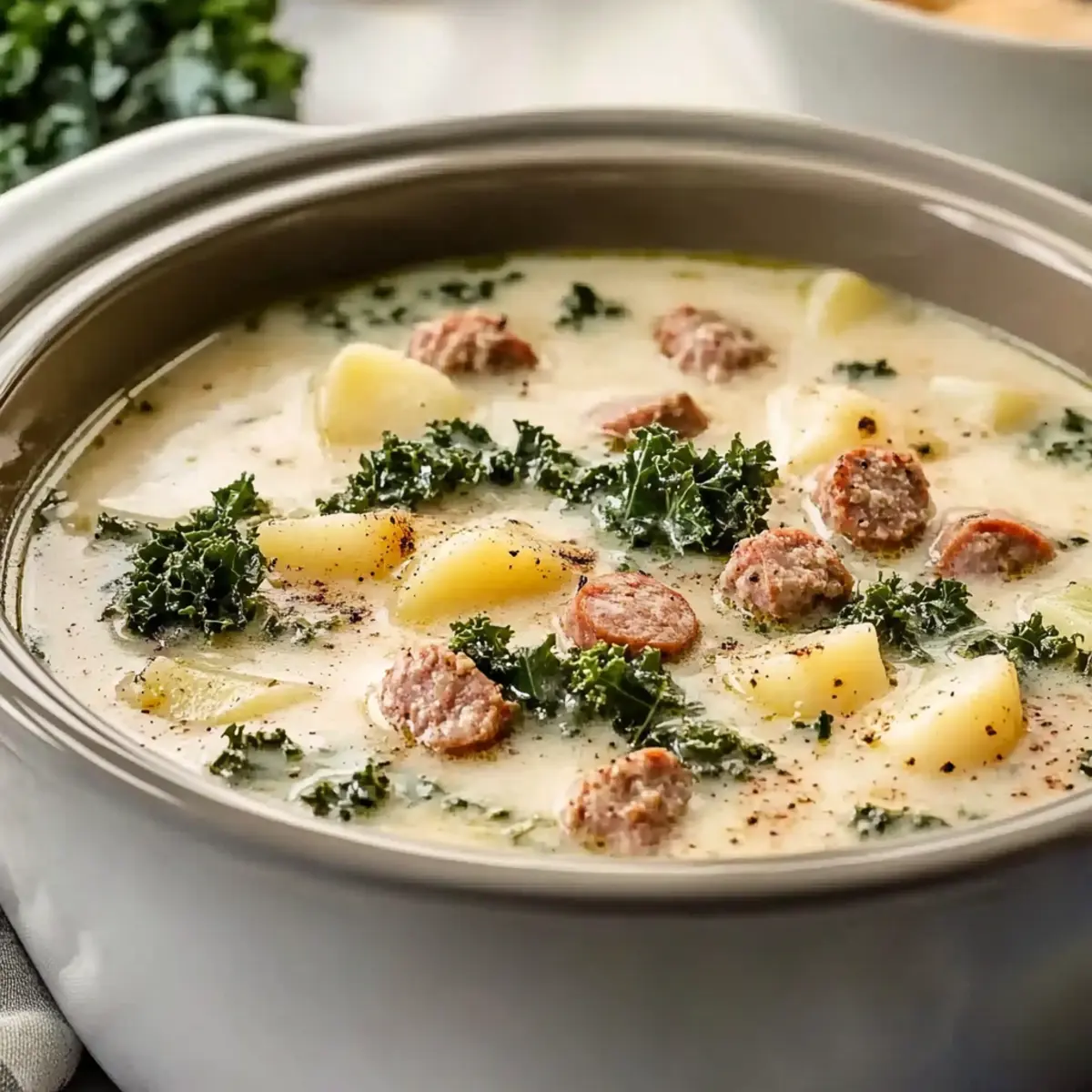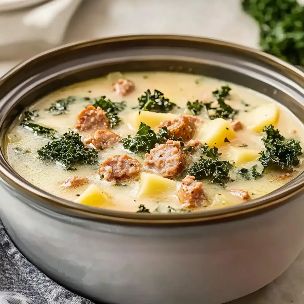 Comforting at its core, this soup is the ultimate cozy meal for chilly nights. Effortless preparation means it’s perfect for busy schedules—just set your crockpot and go! Flavor-packed, the combination of savory Italian sausage and crispy bacon infuses every spoonful with richness. Versatile enough, you can easily customize it by swapping kale for spinach or adding your favorite veggies. Crowd-pleasing, it’s a dish your whole family will love! Serve it with some crusty bread or alongside a fresh salad, and you’ve got a complete, satisfying dinner. Most importantly, the leftovers taste even better the next day—try enjoying them with Green Olive Soup for a delightful meal combo!