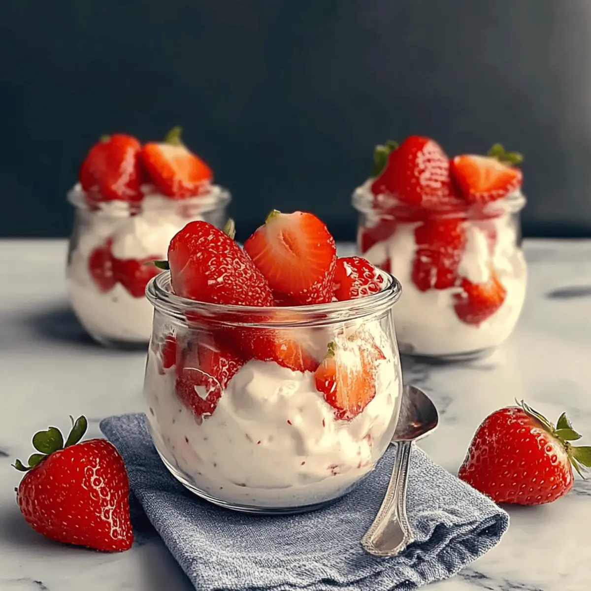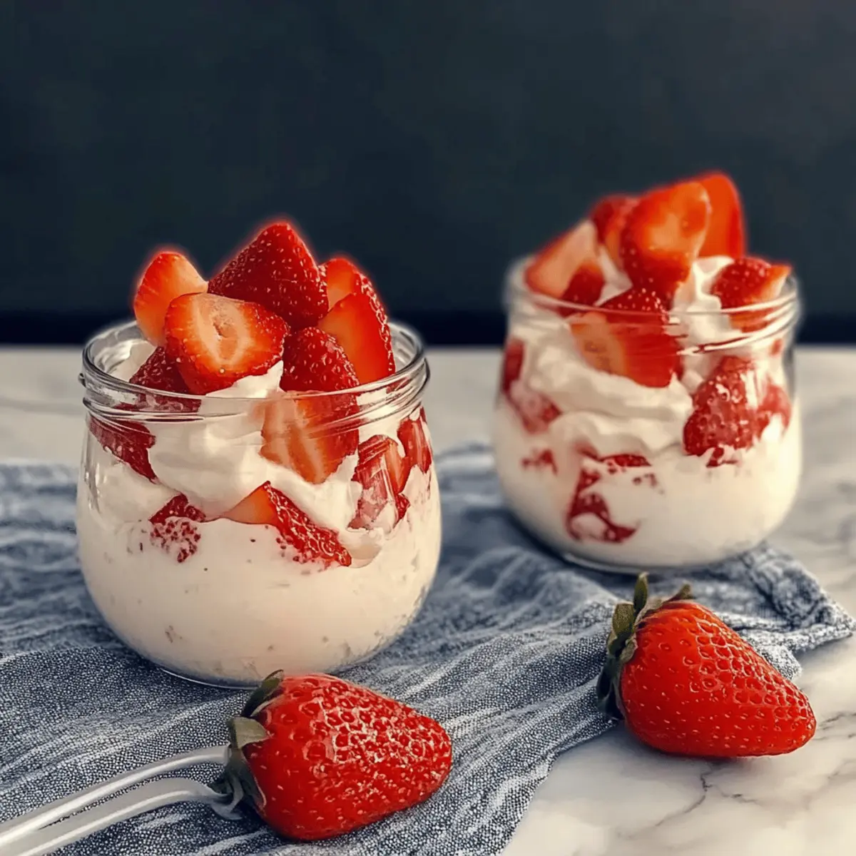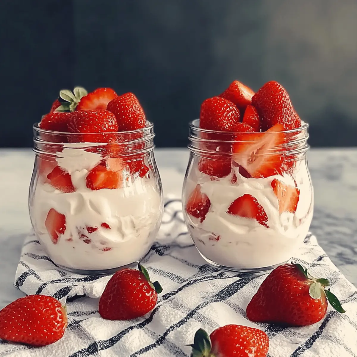 - Assemble the Dessert: Layer sliced strawberries and creamy mixture in clear cups, finishing with a layer of cream.