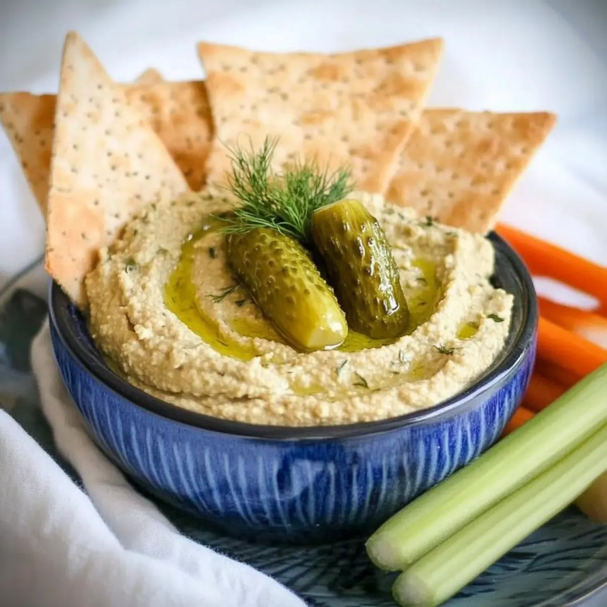 Pita Chips: These crispy chips are the perfect vessel for your Dill Pickle Hummus, offering a crunchy texture that contrasts beautifully with the creamy dip.