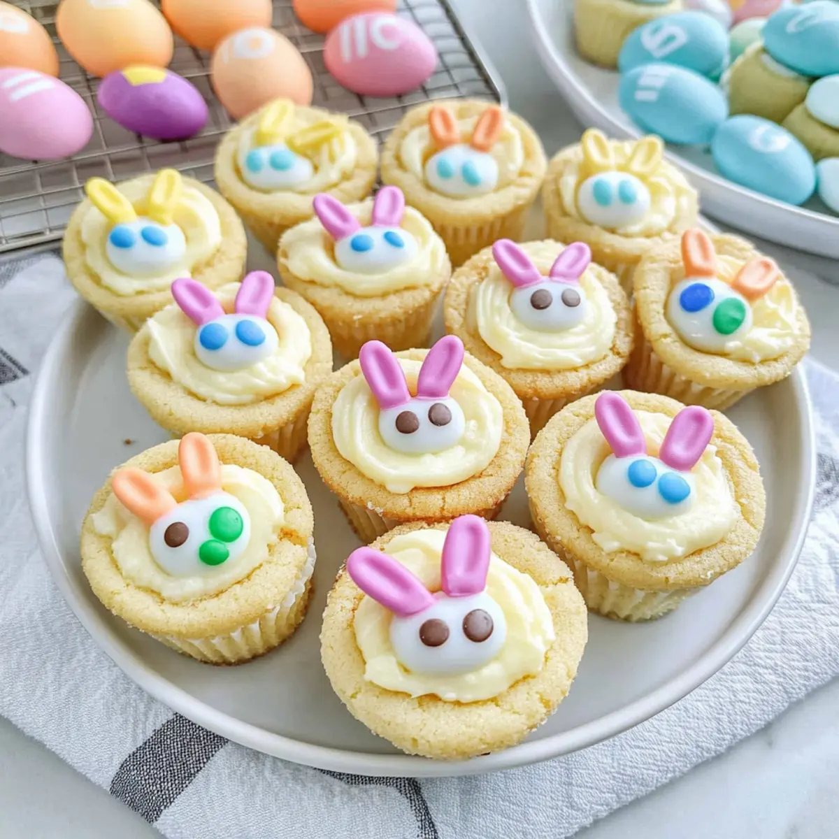 - Fill each cooled cookie cup with ganache and decorate with M&Ms to create bunny faces.