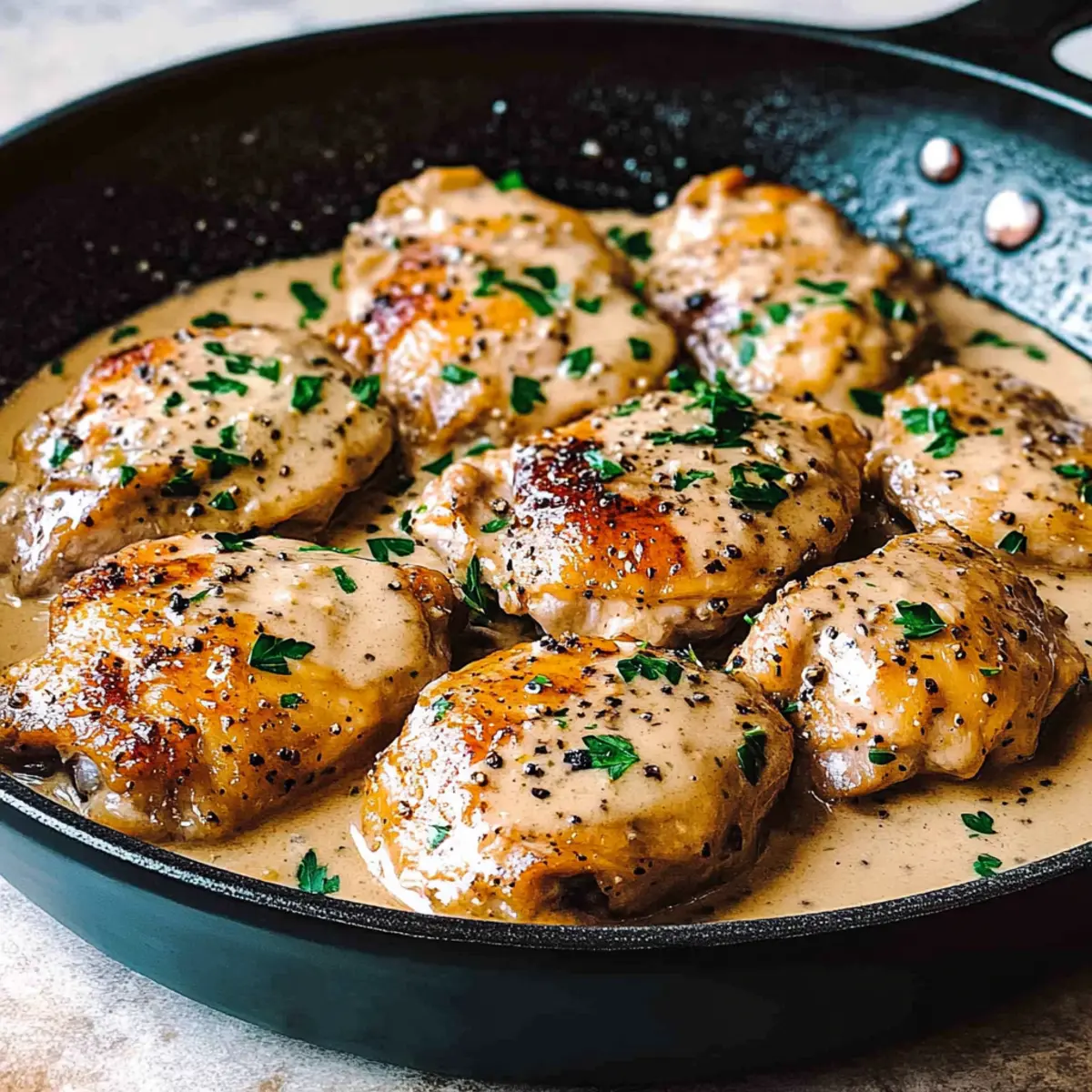 Flavor explosion: The peppercorn-infused sauce is rich and creamy, complementing the tender chicken thighs beautifully.