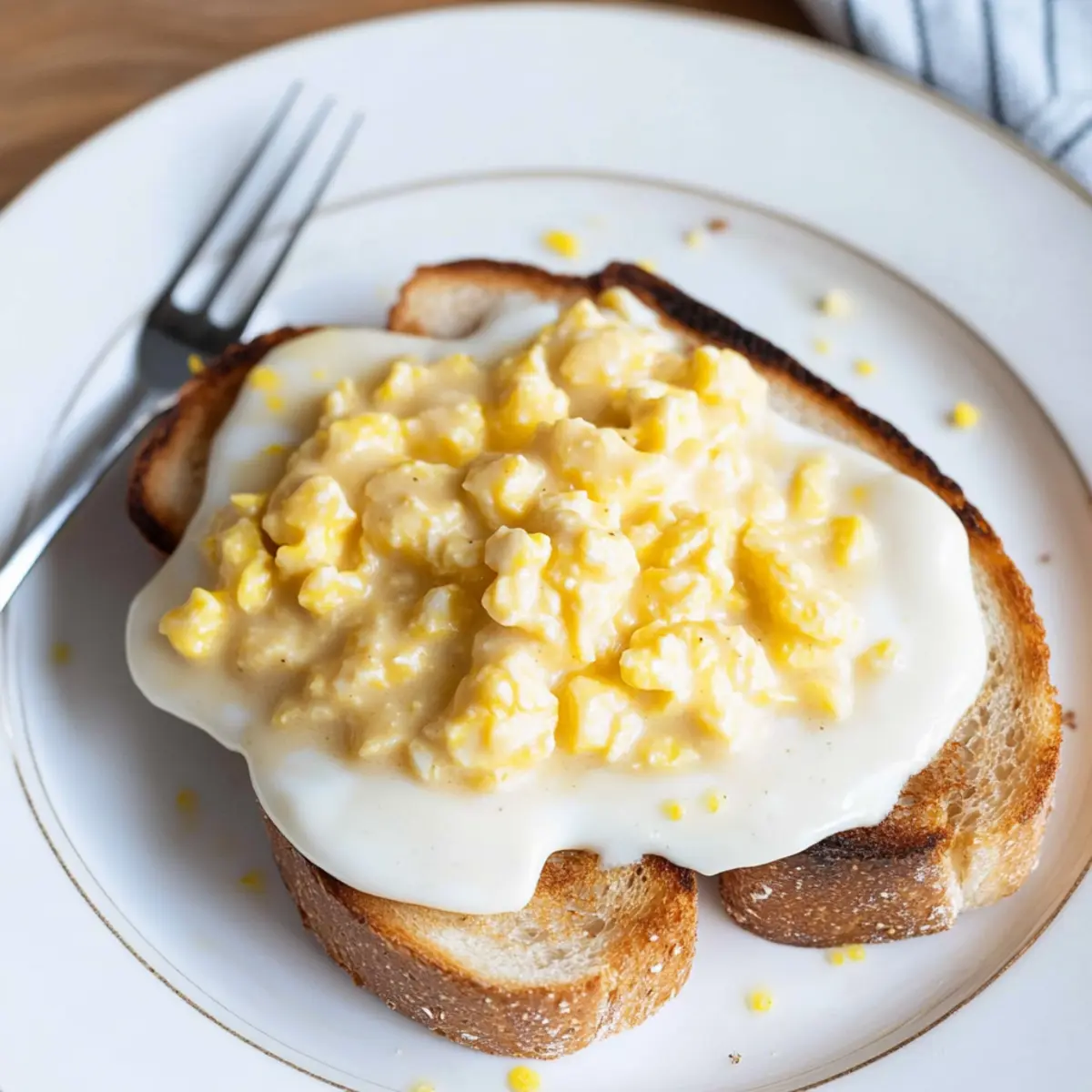 - Toast your choice of bread, English muffins, or biscuits until golden brown. Spoon the creamy eggs mixture over the toasted base and serve immediately.