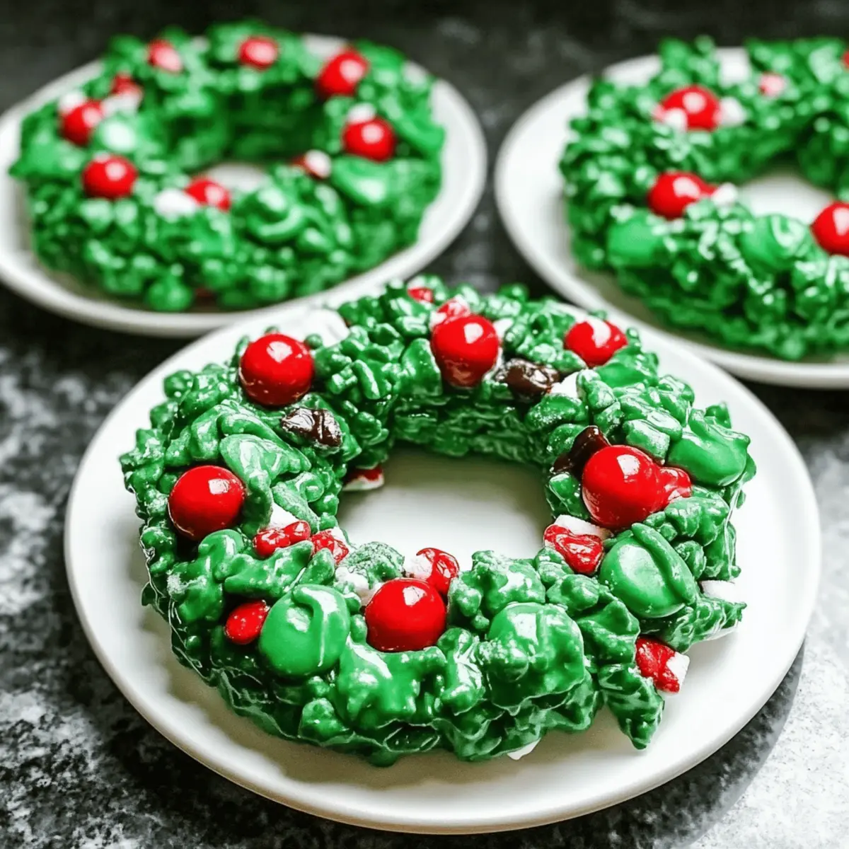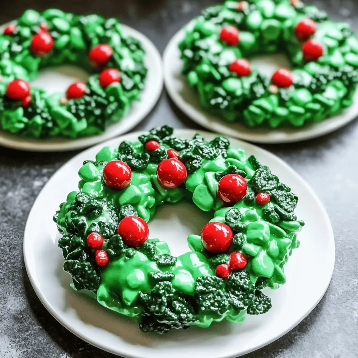 These Festive Christmas Wreath Cookies are perfect for busy home cooks looking to save time during the holiday hustle! You can prepare the marshmallow mixture and fold in the cornflakes up to 24 hours in advance. Simply melt the butter and marshmallows as directed, then mix in the green food coloring and vanilla extract before adding the cornflakes. Store the mixture in an airtight container at room temperature to maintain its texture. When you’re ready to assemble, just press the mixture into shape and decorate with red hot candies or any preferred toppings. This way, you’ll have a fun and festive treat ready in no time, ensuring your holiday celebrations are as joyous as they are delicious!