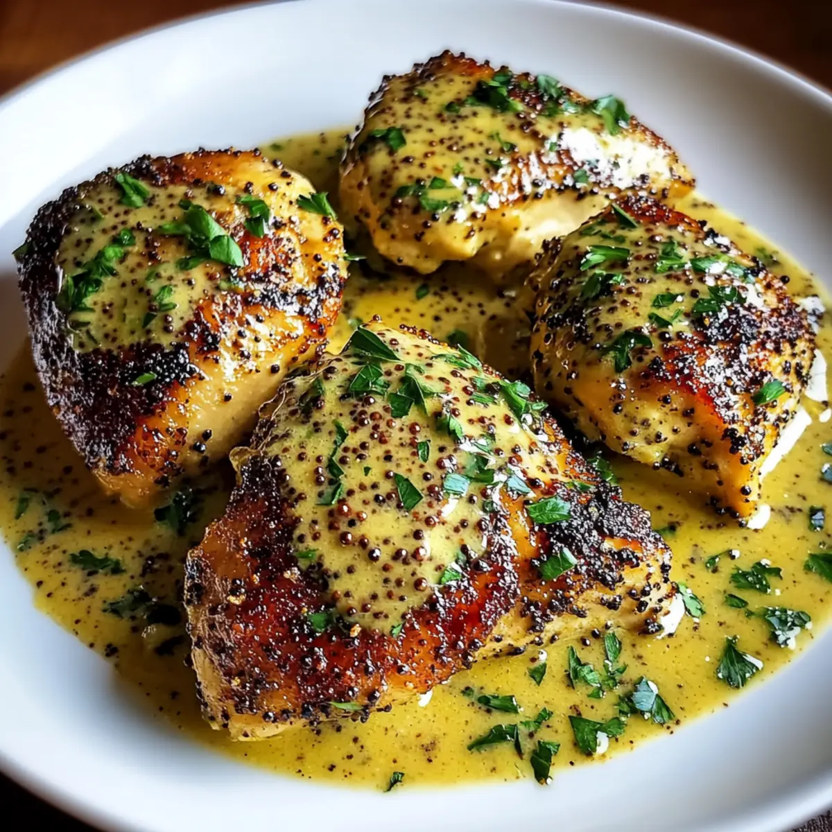 If desired, sprinkle chopped fresh parsley over the top for a pop of color and freshness. This final touch enhances the visual appeal of your French Mustard Chicken, making it a gorgeous centerpiece on your dining table. Plate your dish alongside your favorite sides, and prepare to savor this comforting meal.