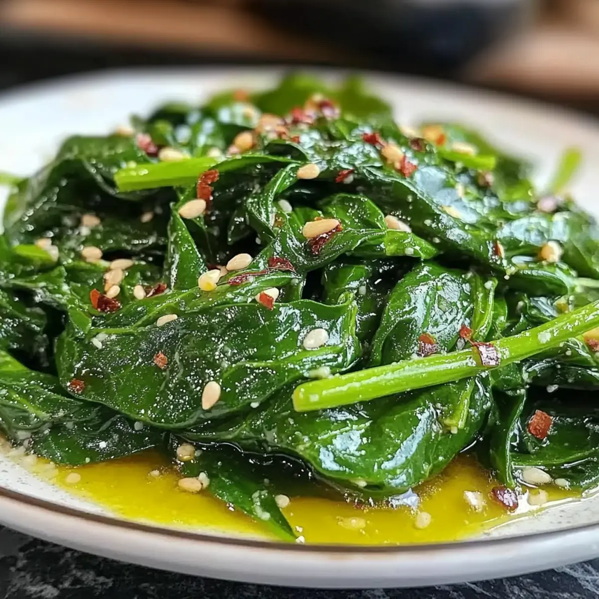Nutty Crunch: Add toasted pine nuts for a delightful crunch and extra flavor that contrasts beautifully with the tender spinach. The mix of textures will make every bite satisfying.