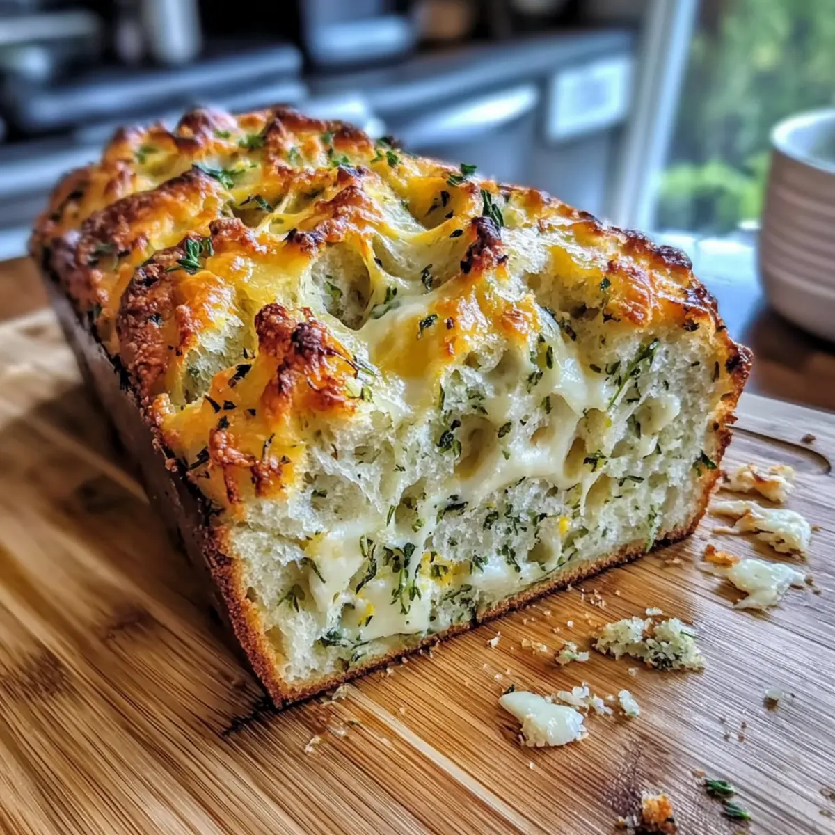 Avoid Overmixing: Gently fold the wet and dry ingredients to prevent a dense texture in this Garlic Herb and Cheese Bread Recipe Easy Baked Loaf for Beginners.