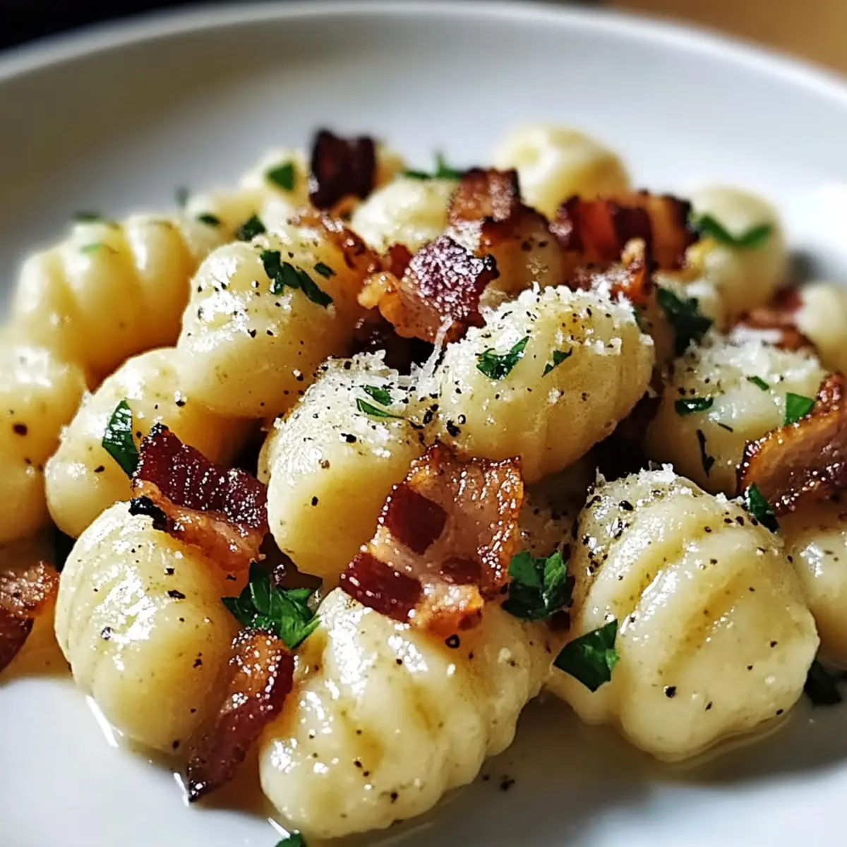 A delightful Gnocchi Carbonara with Bacon & Parmesan that's perfect for cozy family nights.