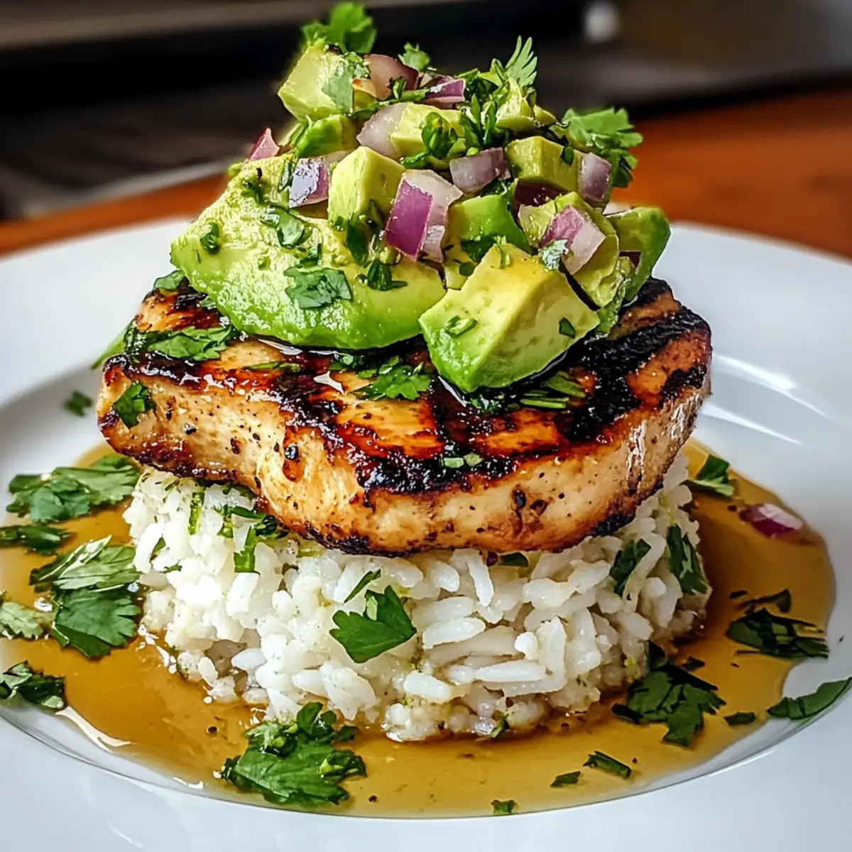 Jasmine rice – Tender and fragrant, serves as a delightful base for the chicken and avocado.