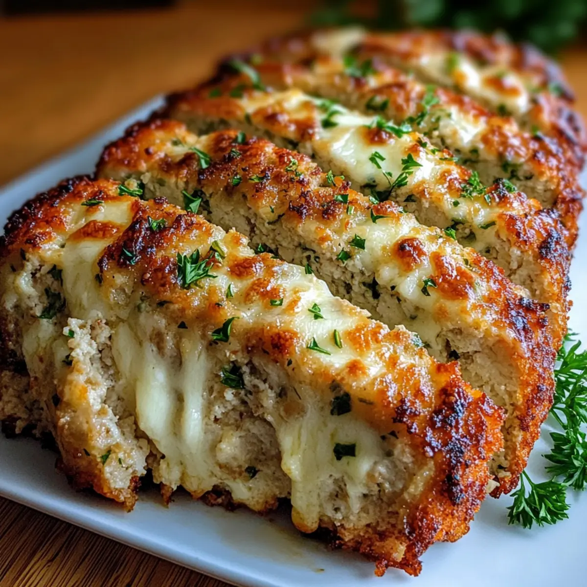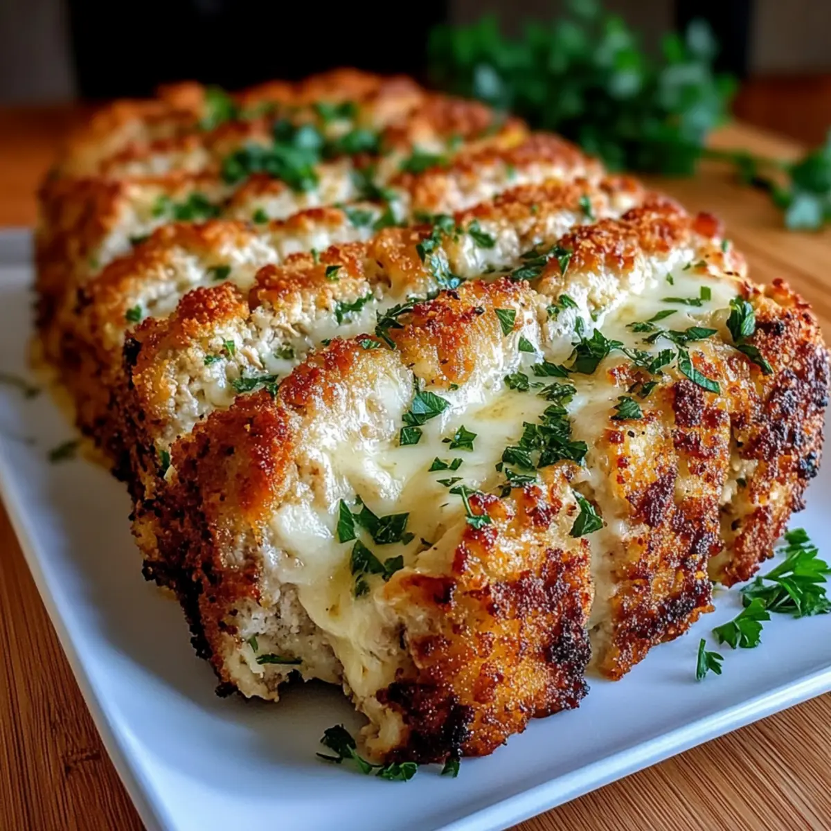 Once baked to perfection, remove your Parmesan Chicken Meatloaf from the oven and allow it to rest for about 10 minutes. This resting period is crucial; it helps the juices redistribute and makes slicing easier. As the delightful aroma fills your kitchen, prepare to serve up slices of cheesy, comforting goodness for your family.