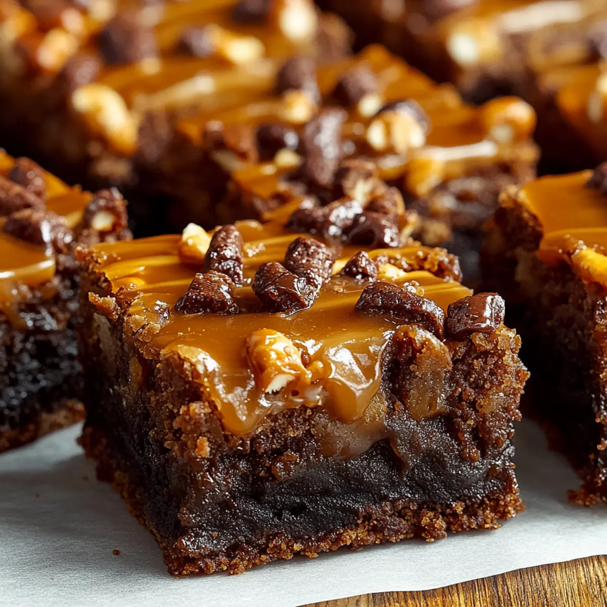 These Pretzel Bottom Caramel Brownies are a fantastic choice for meal prep, allowing busy cooks to enjoy delicious homemade treats without the last-minute rush! You can prepare the pretzel crust up to 24 hours in advance by mixing the crushed pretzels, melted butter, and brown sugar, then pressing it into the pan. Cover and refrigerate it until you’re ready to bake. Additionally, the brownie batter can be made up to 3 days in advance; just mix, cover, and chill it in the fridge. When it’s time to bake, simply pour the chilled brownie batter over the crust and bake as directed. For the caramel, you can make it ahead too—simply store it in a sealed container in the fridge for up to a week; warm it slightly before drizzling. This way, even with a busy schedule, you’ll have irresistible Pretzel Bottom Caramel Brownies ready to impress!