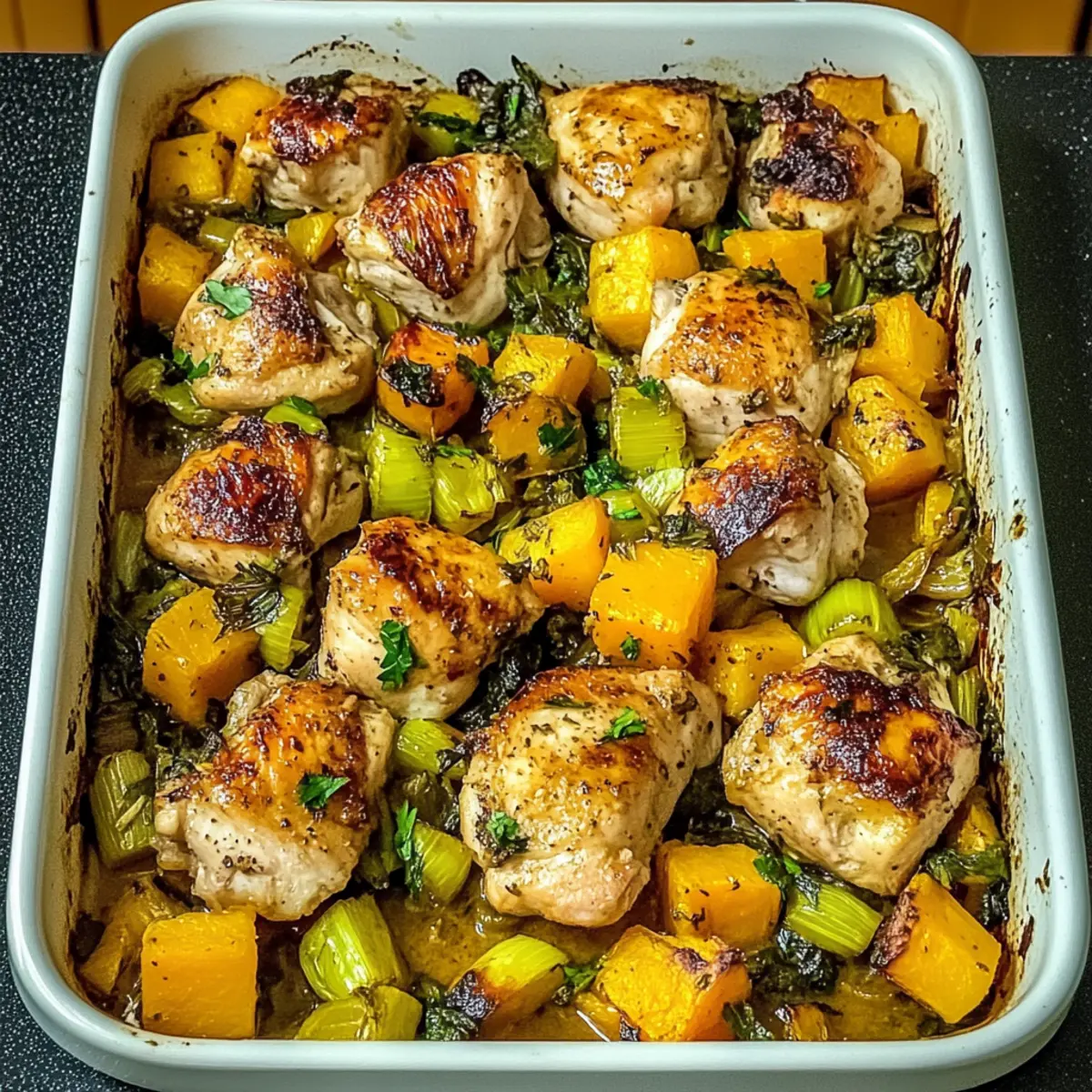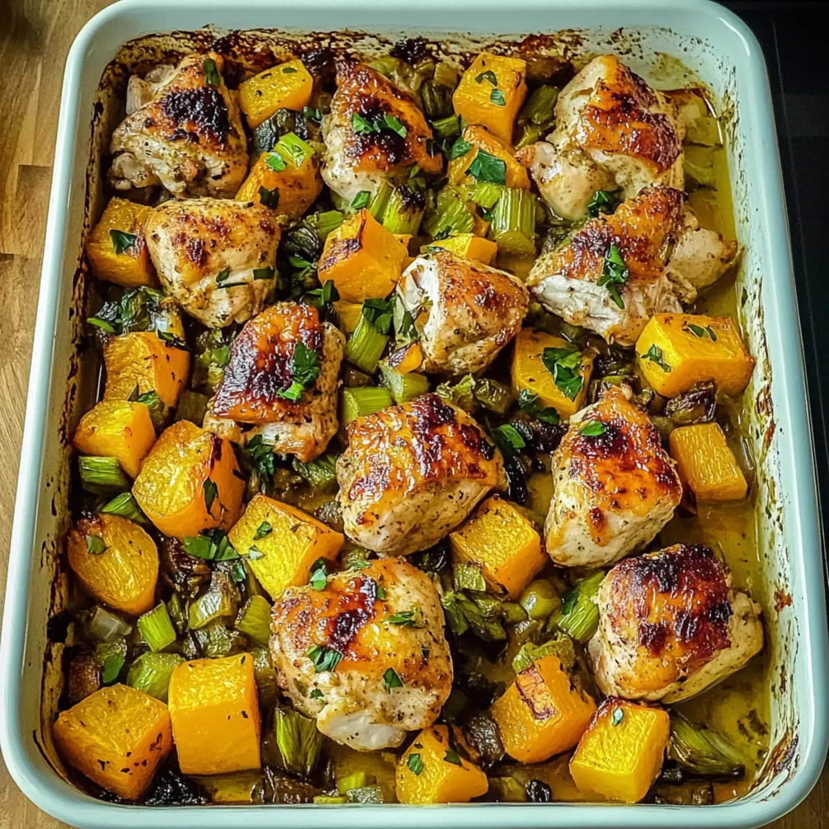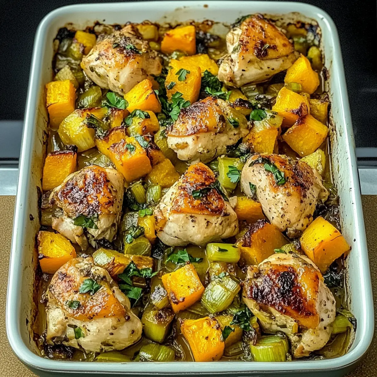 Cozy up with this Savory Chicken Leek and Butternut Squash Bake that combines juicy chicken, sweet butternut squash, and tender leeks, perfect for autumn nights.
