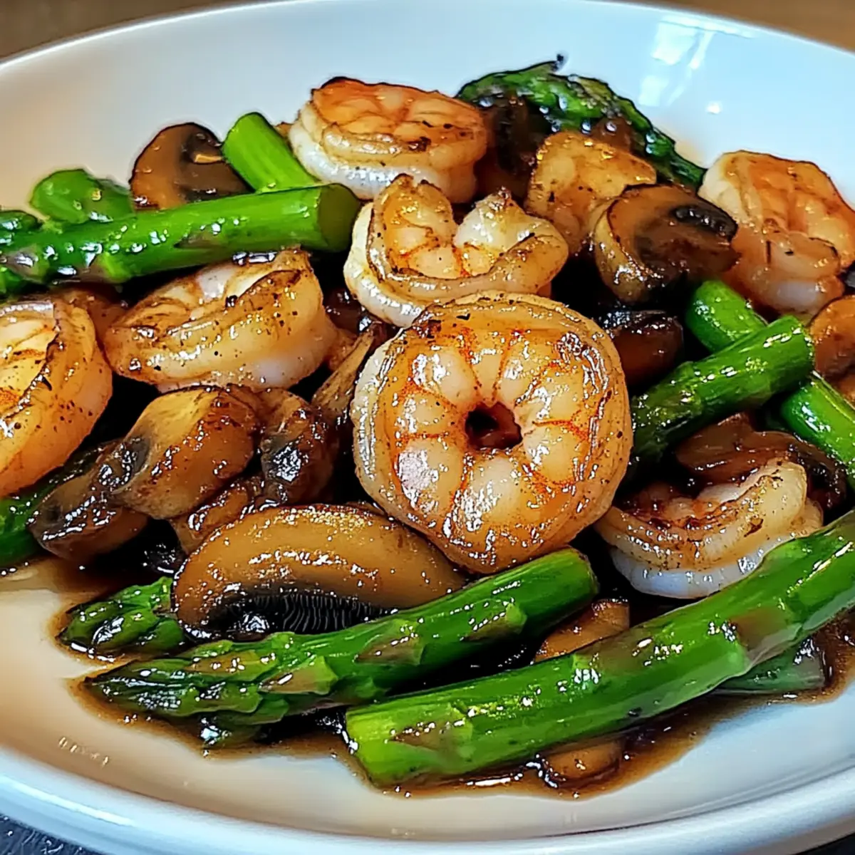 These Shrimp and Asparagus Stir-Fry ingredients are perfect for meal prep, making your busy nights feel a little less hectic! You can marinate the shrimp with soy sauce and salt up to 24 hours in advance, then refrigerate them in an airtight container. The vegetables can also be prepped (cut asparagus and sliced mushrooms) and stored in the fridge for up to 3 days to maintain their freshness. When you’re ready to enjoy this vibrant stir-fry, simply heat the wok, sauté the aromatics, add the marinated shrimp, and toss in the prepped veggies. This way, you’ll achieve that delicious, restaurant-style dish with minimal effort and maximum flavor!