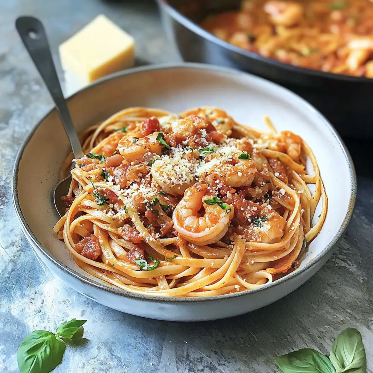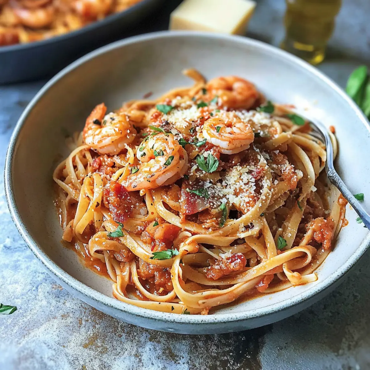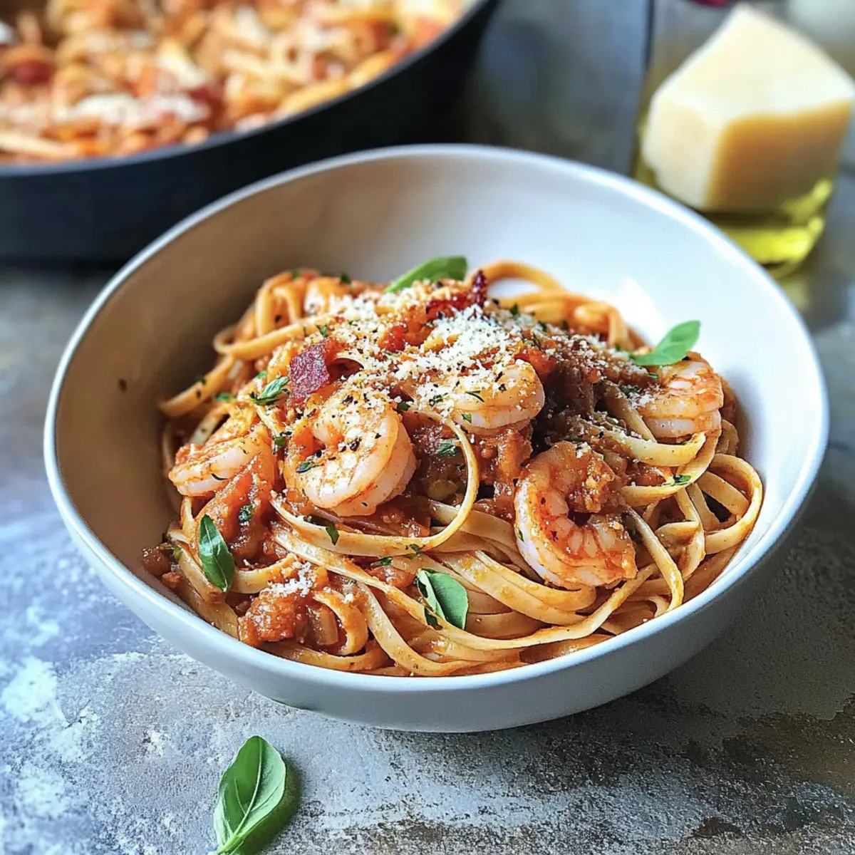 Gather your loved ones around for a delightful meal that perfectly balances spice with comforting flavors, enhancing your shrimp pasta experience.