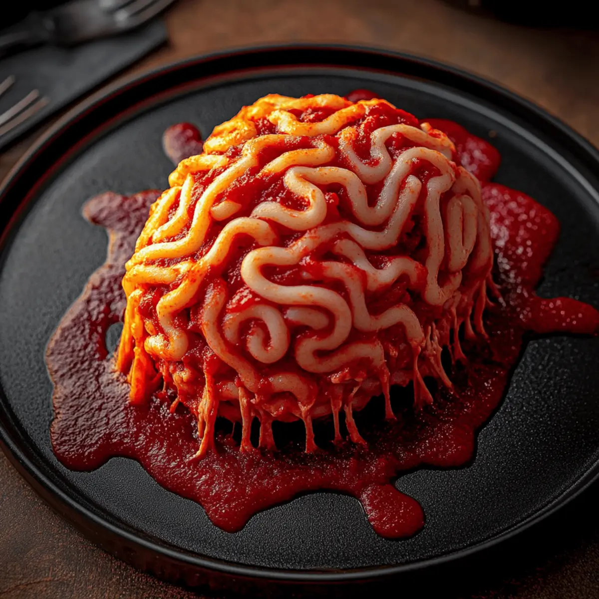 Embrace the spooky spirit of Halloween with this delightful Spaghetti Brain Bake!