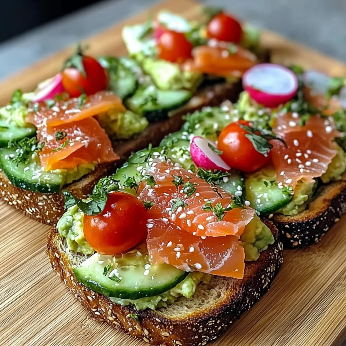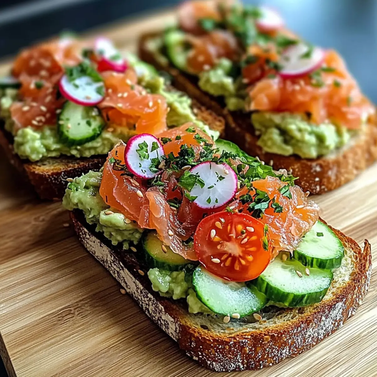 Flavorful Layers: The combination of creamy avocado, savory smoked salmon, and crunchy veggies creates a vibrant explosion of taste in every bite.