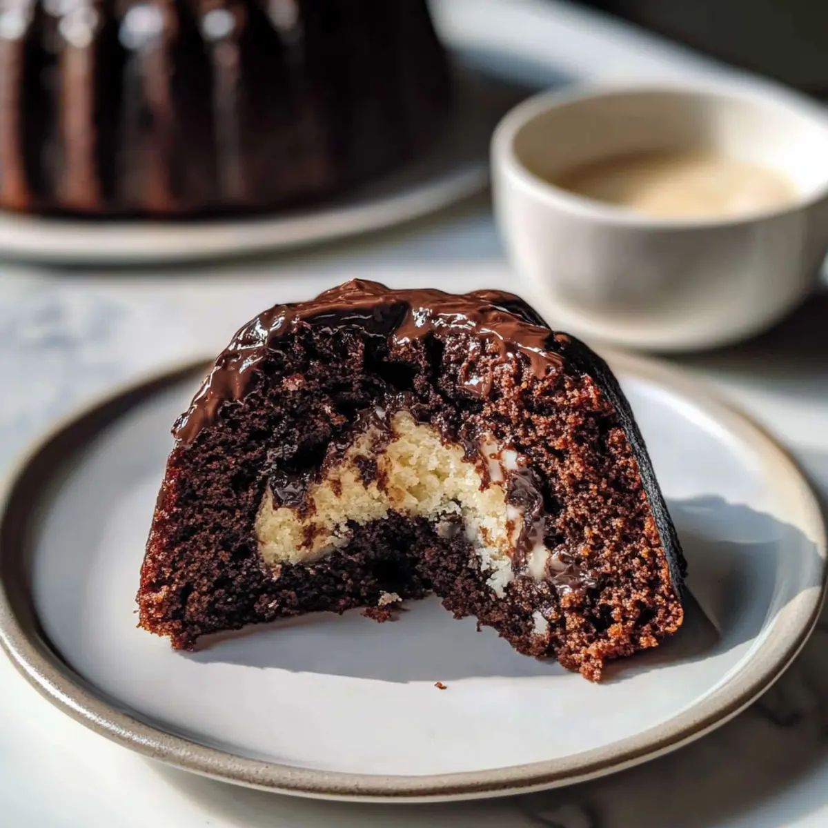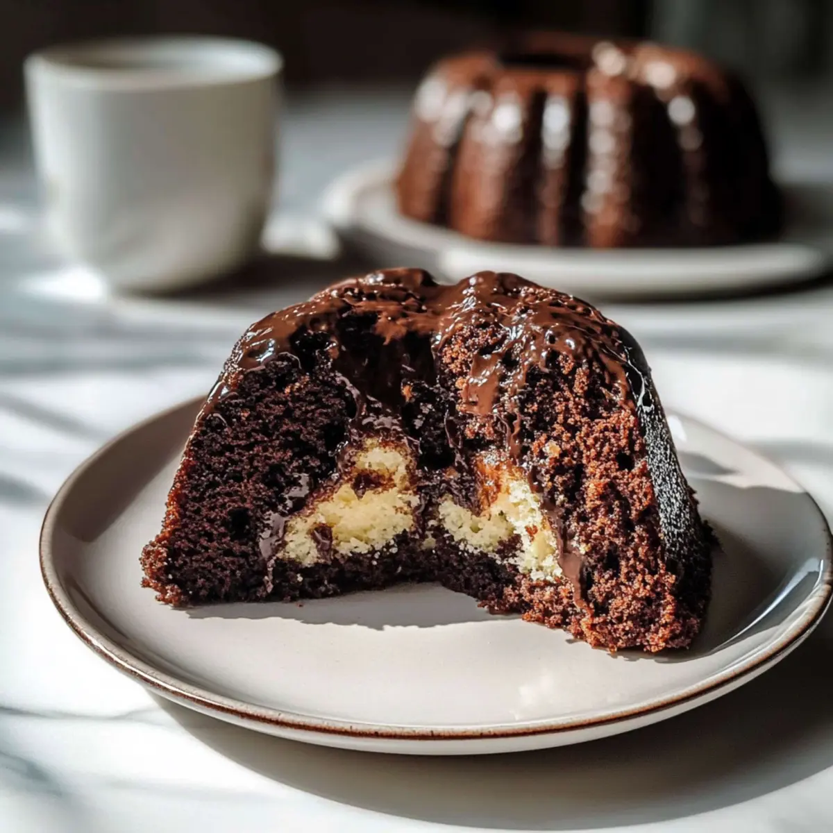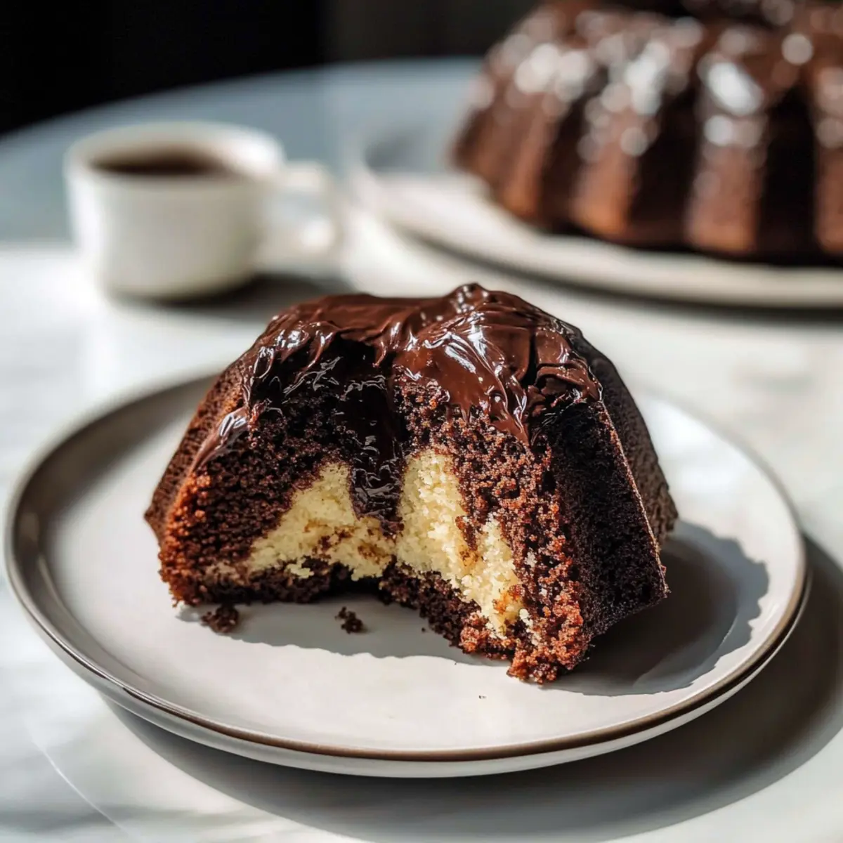 Allow the cake to cool in the Bundt pan for about 15 minutes before carefully inverting it onto a serving platter. This cooling time helps set the cake, making it easier to release without breaking. Once on the platter, let it cool completely before drizzling with the chocolate glaze.