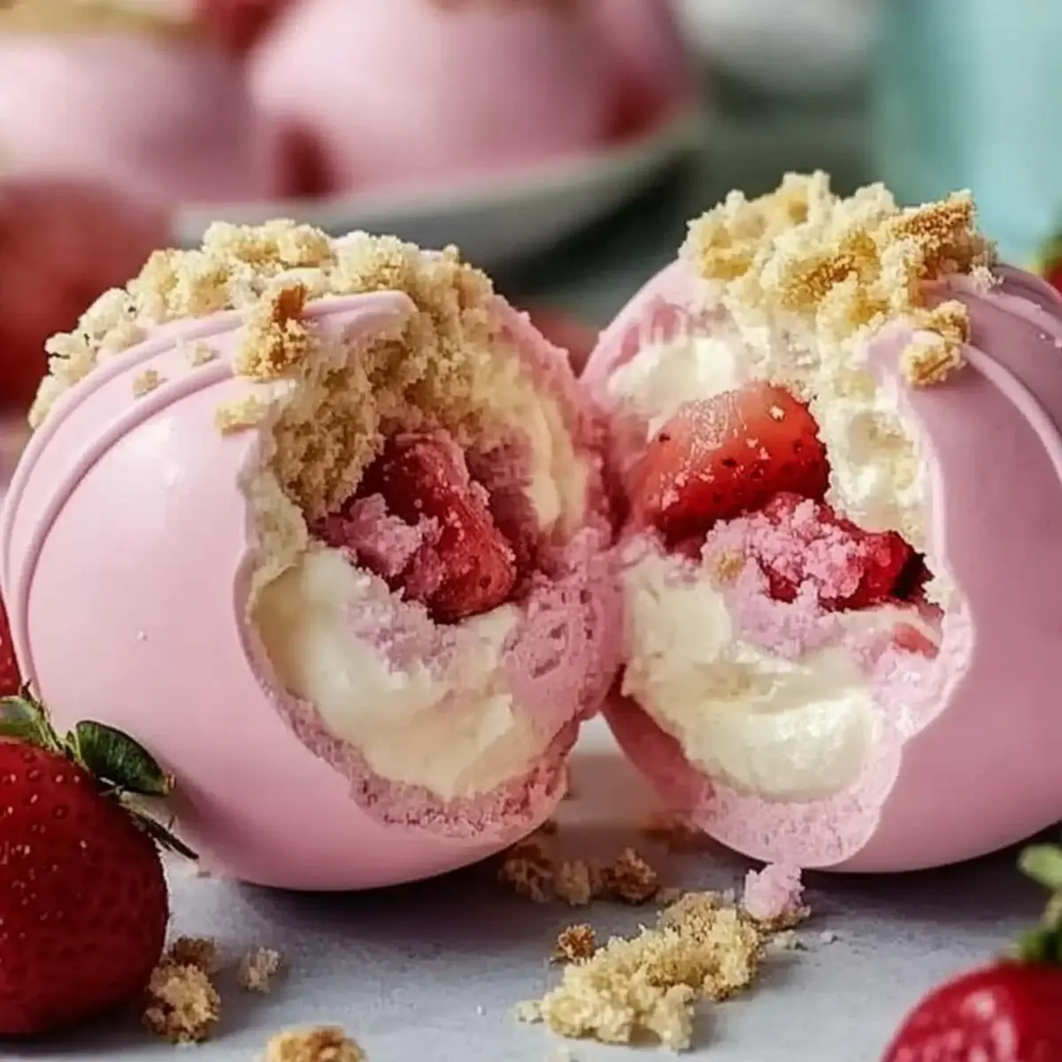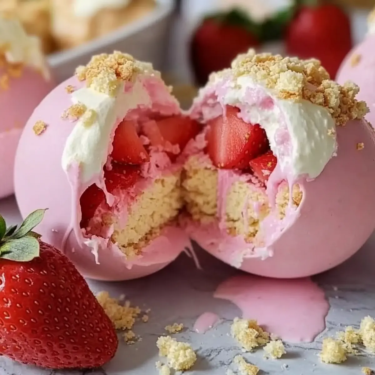 Textural Balance: Use a mix of soft cream and crunchy shortcake crumbs for a pleasing texture contrast inside the Strawberry Shortcake Easter Egg Bombs.