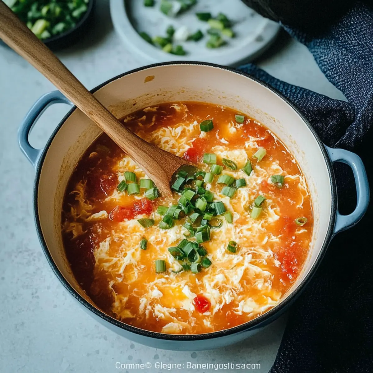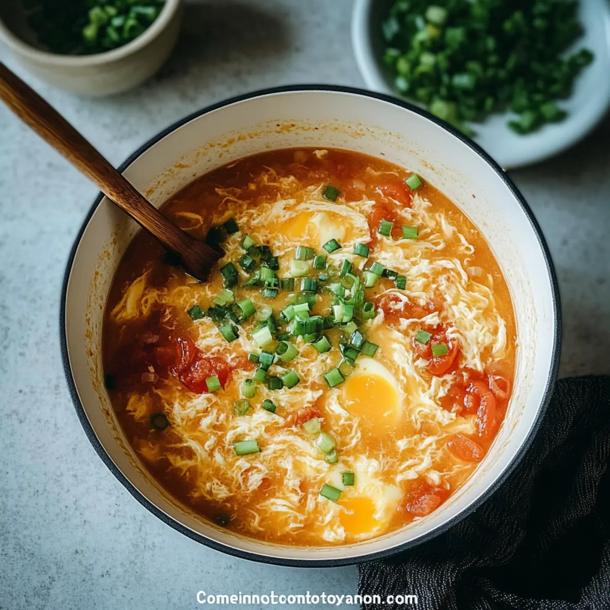 Serving Suggestion: Enjoy your reheated Tomato Egg Drop Soup with fresh green onions sprinkled on top for added flavor and color!