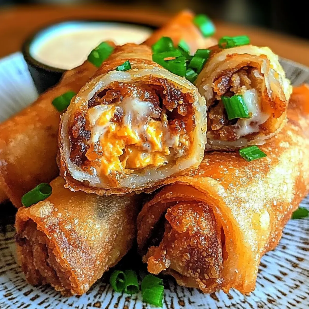 Dipping Sauce Delight: Enhance the flavor experience by serving with various dipping sauces; it makes the Voodoo Egg Rolls even more irresistible and catered to different tastes.
