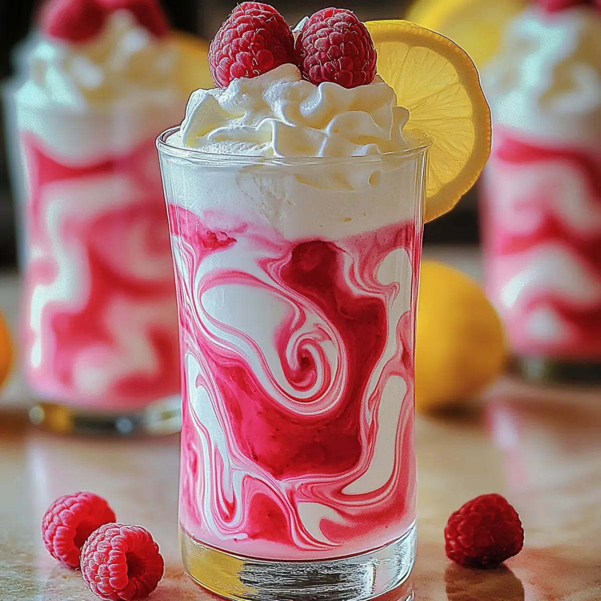 Enjoy a creamy, refreshing Whipped Pink Lemonade, a delightful blend of vanilla ice cream, tangy lemon, and raspberry.