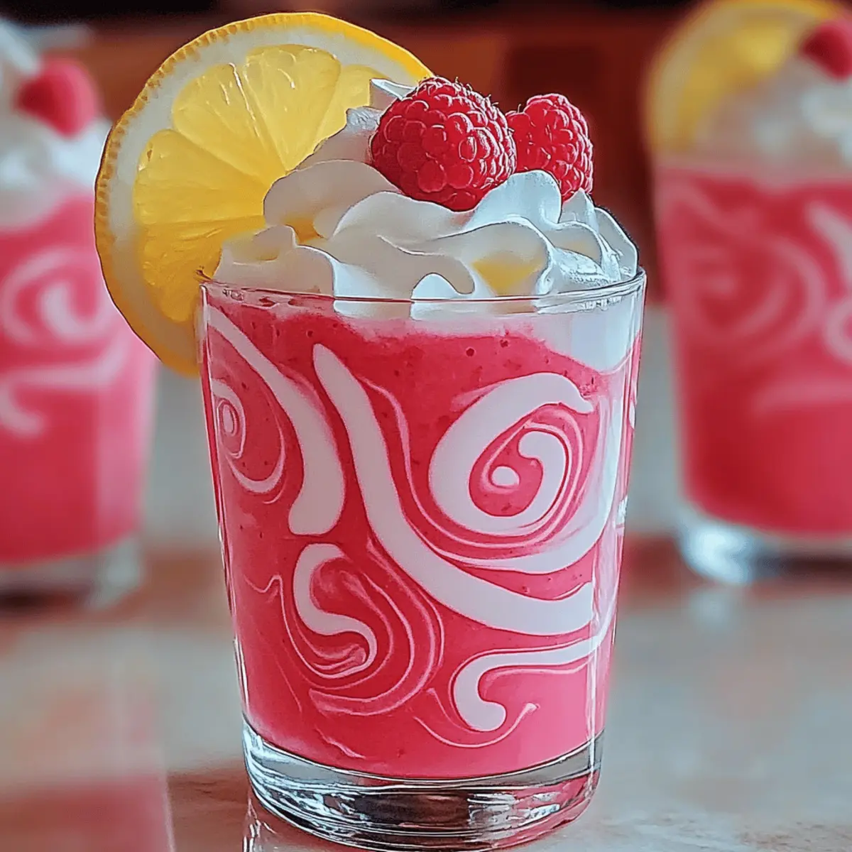 Now, it’s time for the finishing touches! Generously dollop whipped cream on top of each glass for added indulgence. Then, elegantly place a few fresh raspberries and a slice of lemon on top as garnishes. This not only adds texture but enhances the vibrant appeal of your Whipped Pink Lemonade Recipe, turning it into an irresistible sight!